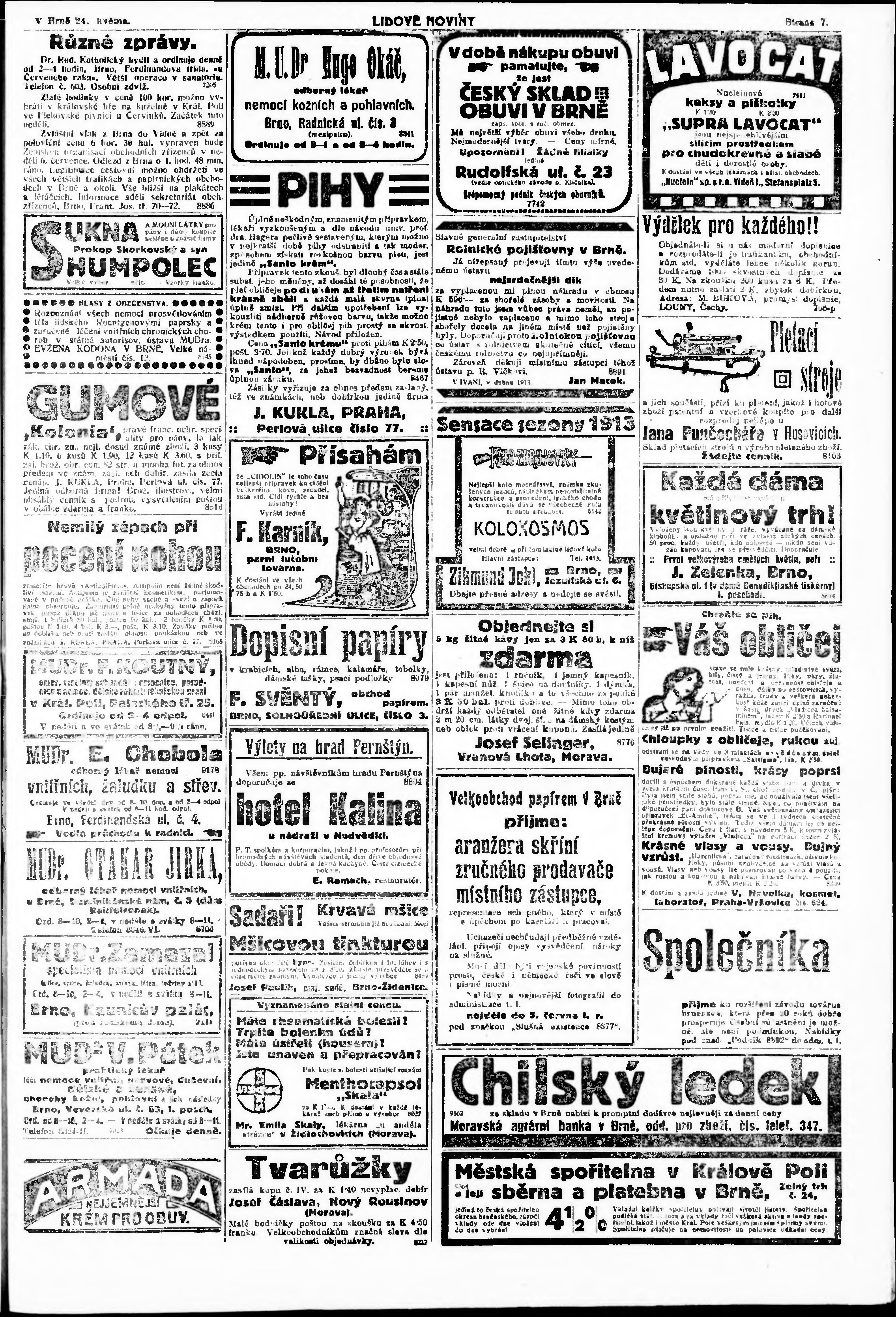 * Datum vydání výtisku: 24.5.1913 Číslo výtisku: 140 Poznámky k výtisku: malé vydání se zábavnou přílohou;