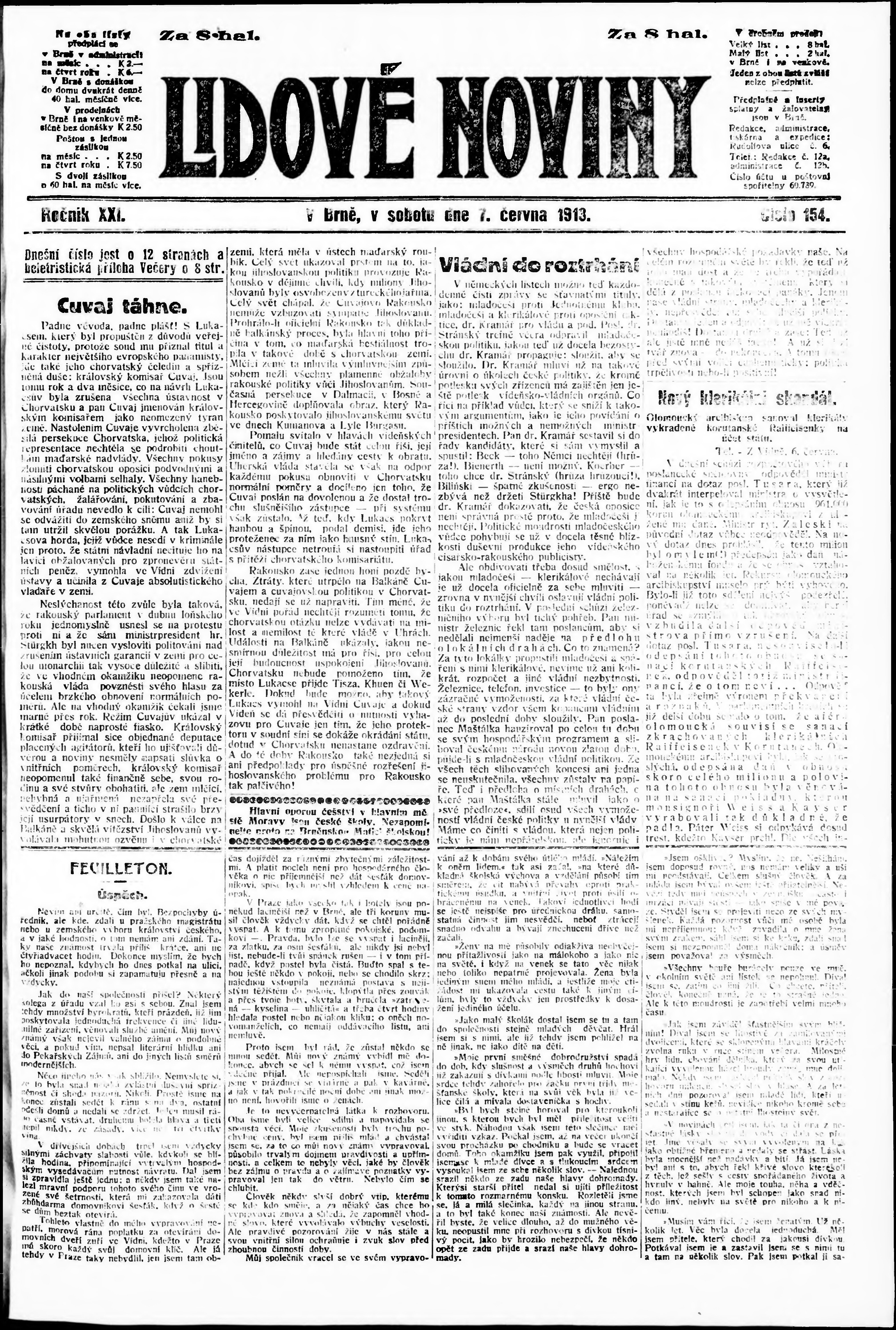 * Datum vydání výtisku: 7.6.1913 Číslo výtisku: 154