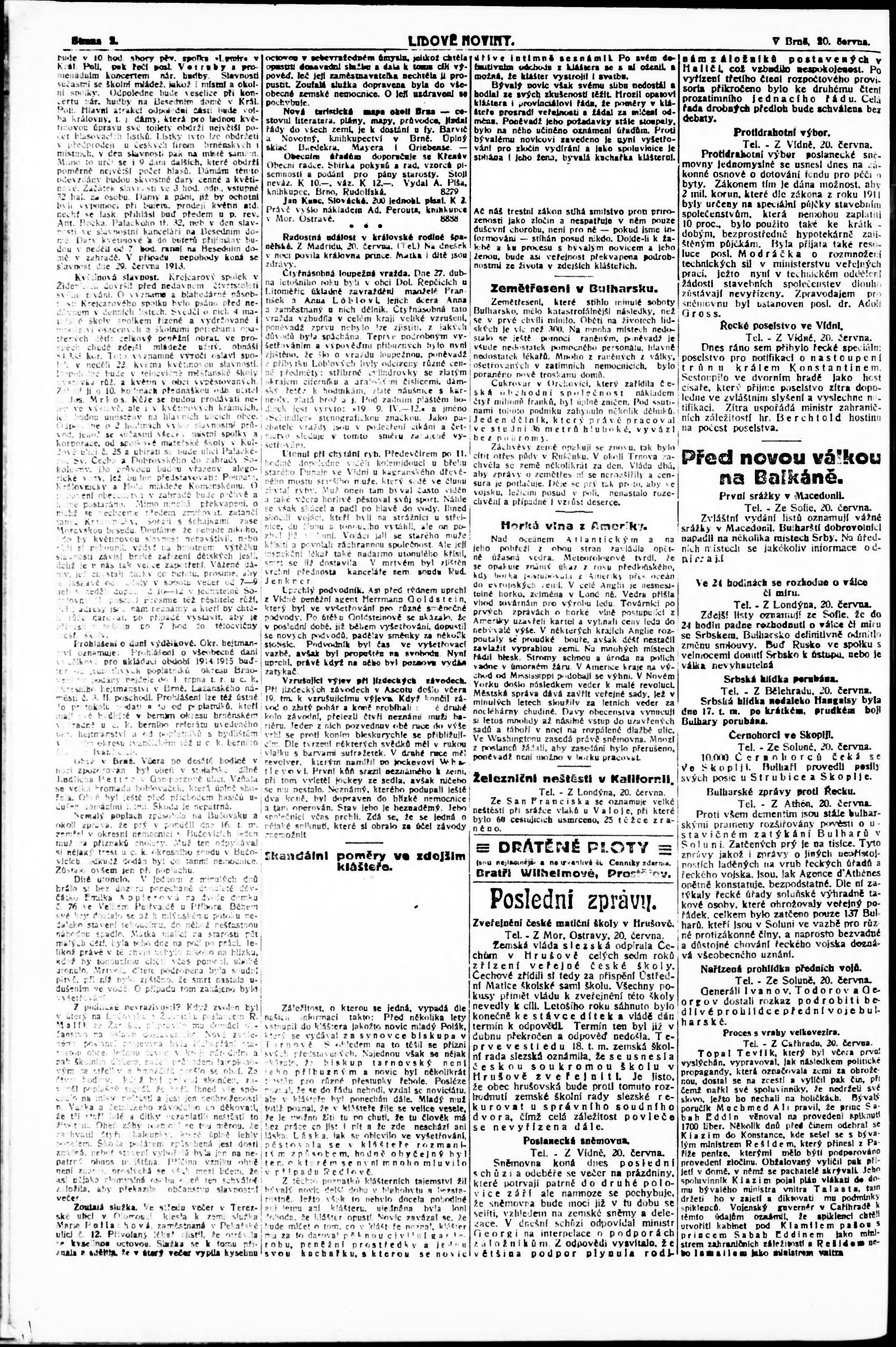 * Datum vydání výtisku: 20.6.1913 Číslo výtisku: 167 Poznámky k výtisku: malé vydání;