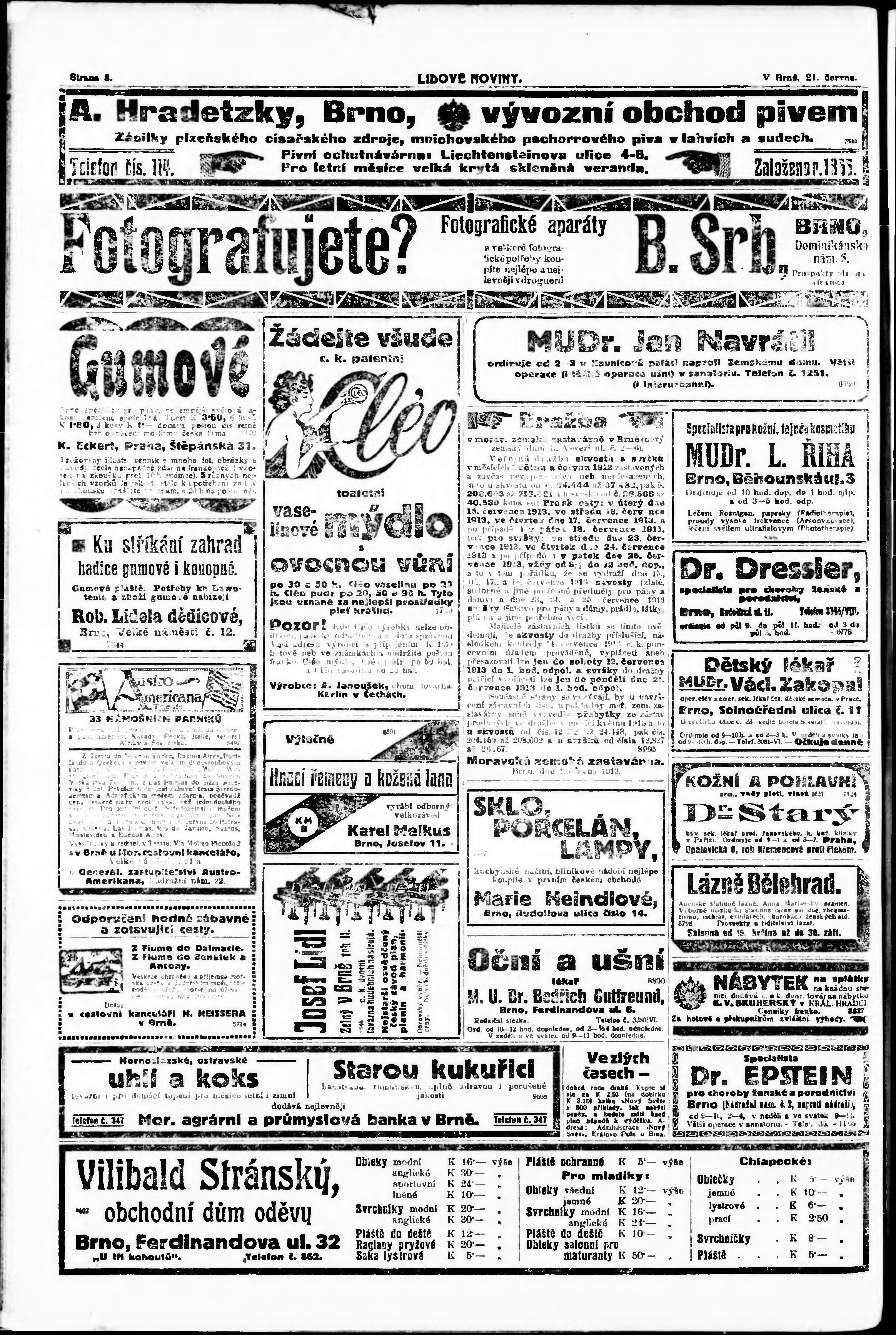 * Datum vydání výtisku: 21.6.1913 Číslo výtisku: 168