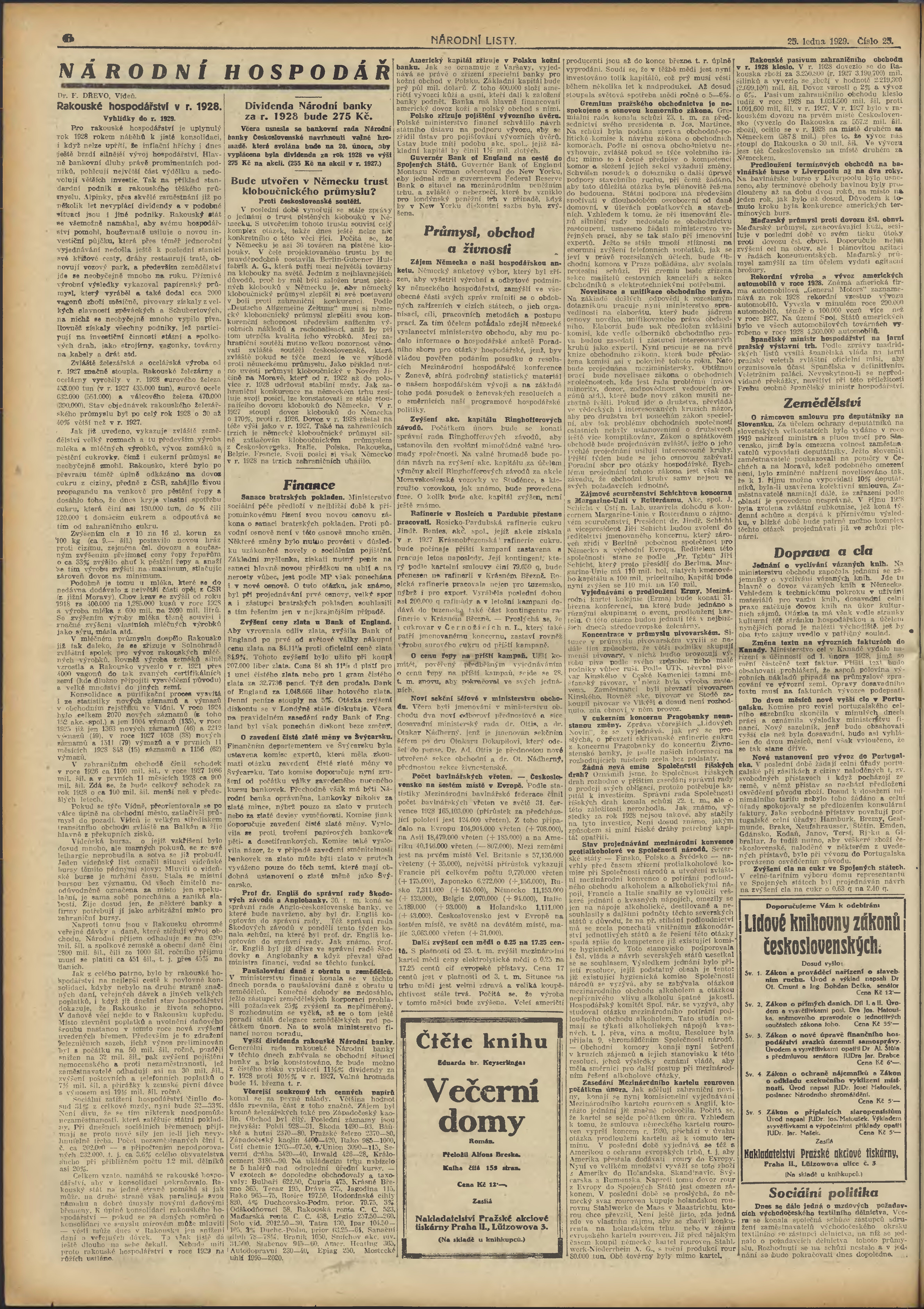 * Datum vydání výtisku: 25.1.1929 Číslo výtisku: 25