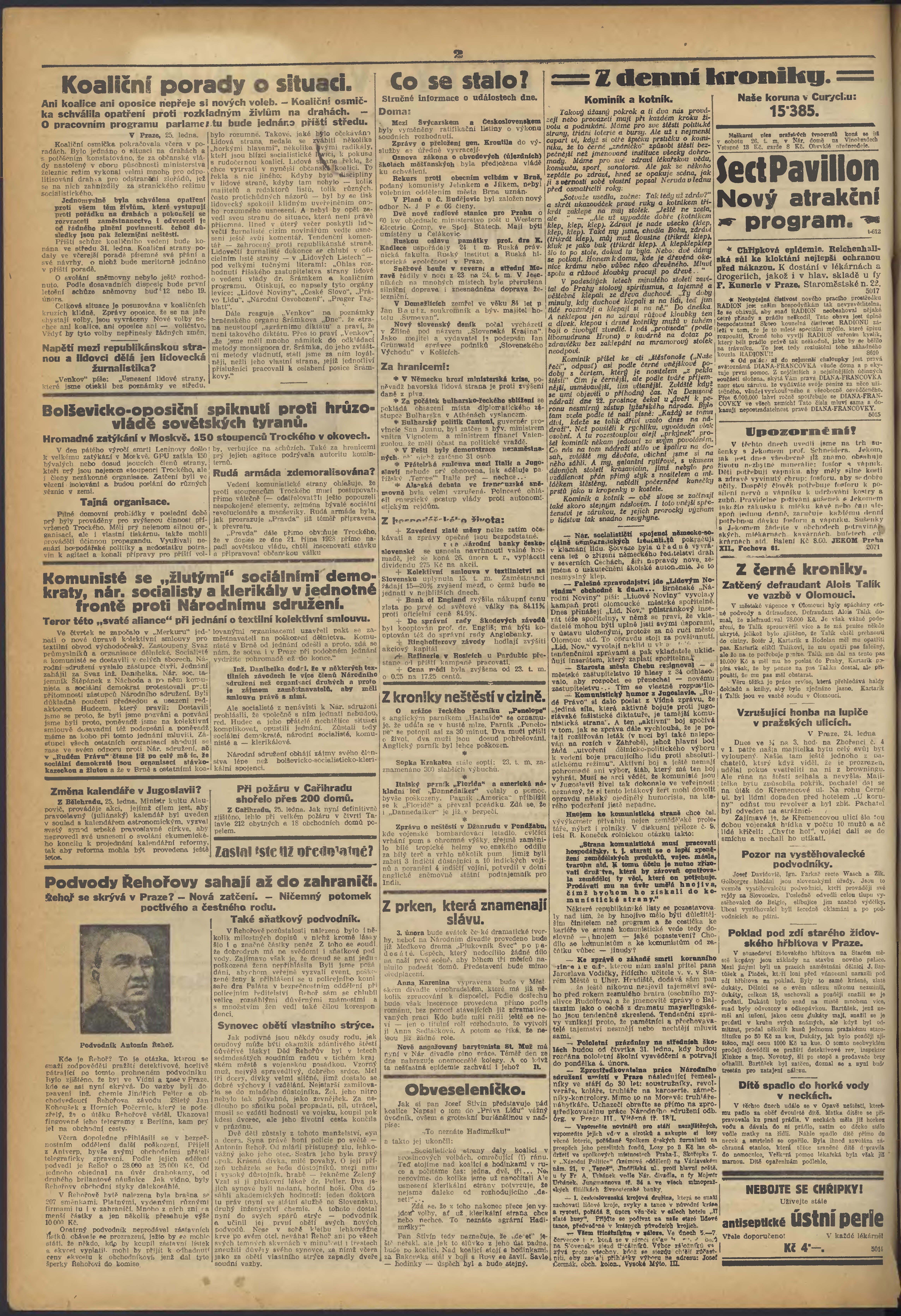 * Datum vydání výtisku: 25.1.1929 Číslo výtisku: 21 Poznámky k výtisku: večerní vydání;