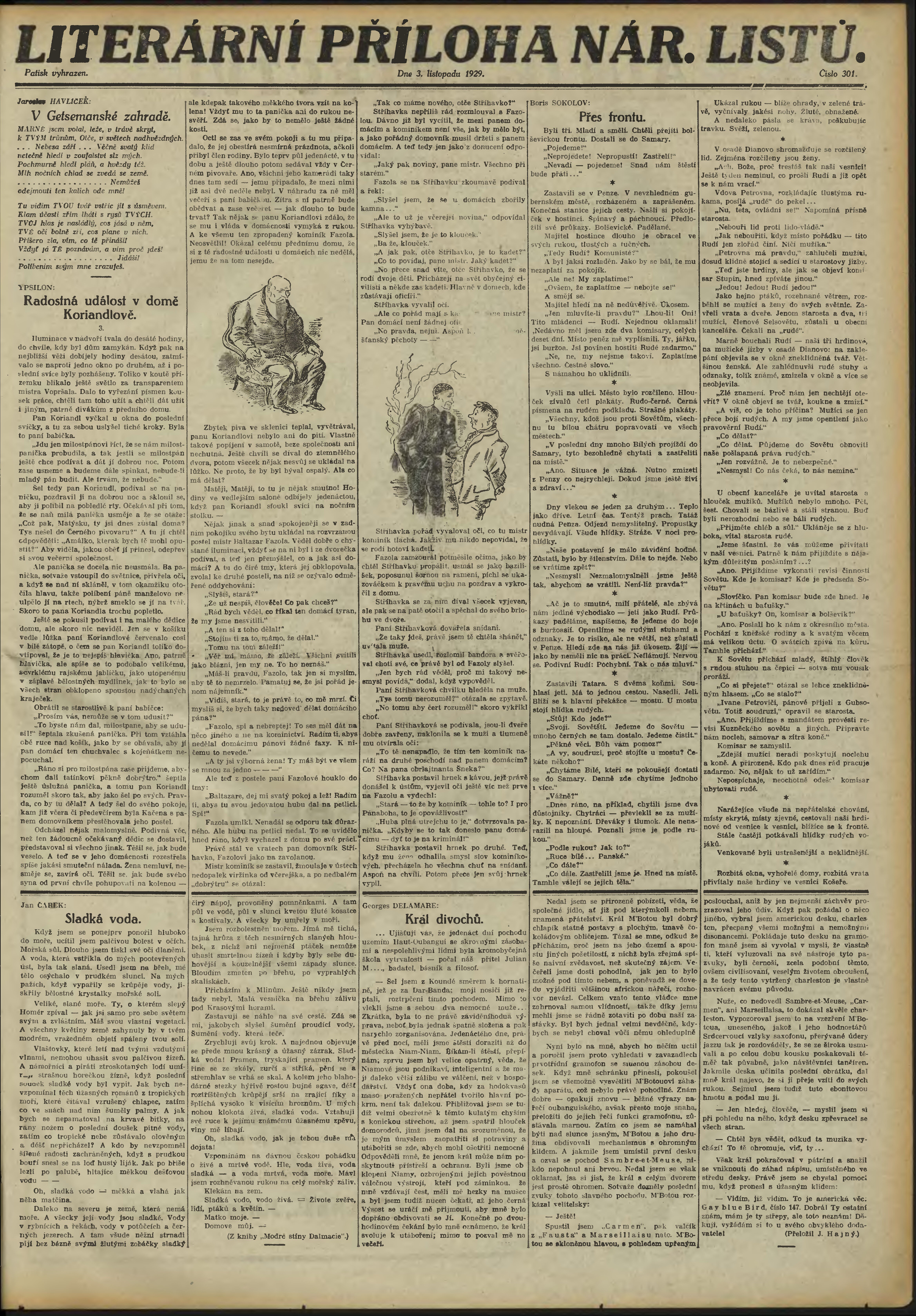 * Datum vydání výtisku: 3.11.1929 Číslo výtisku: 301 Typ výtisku: příloha