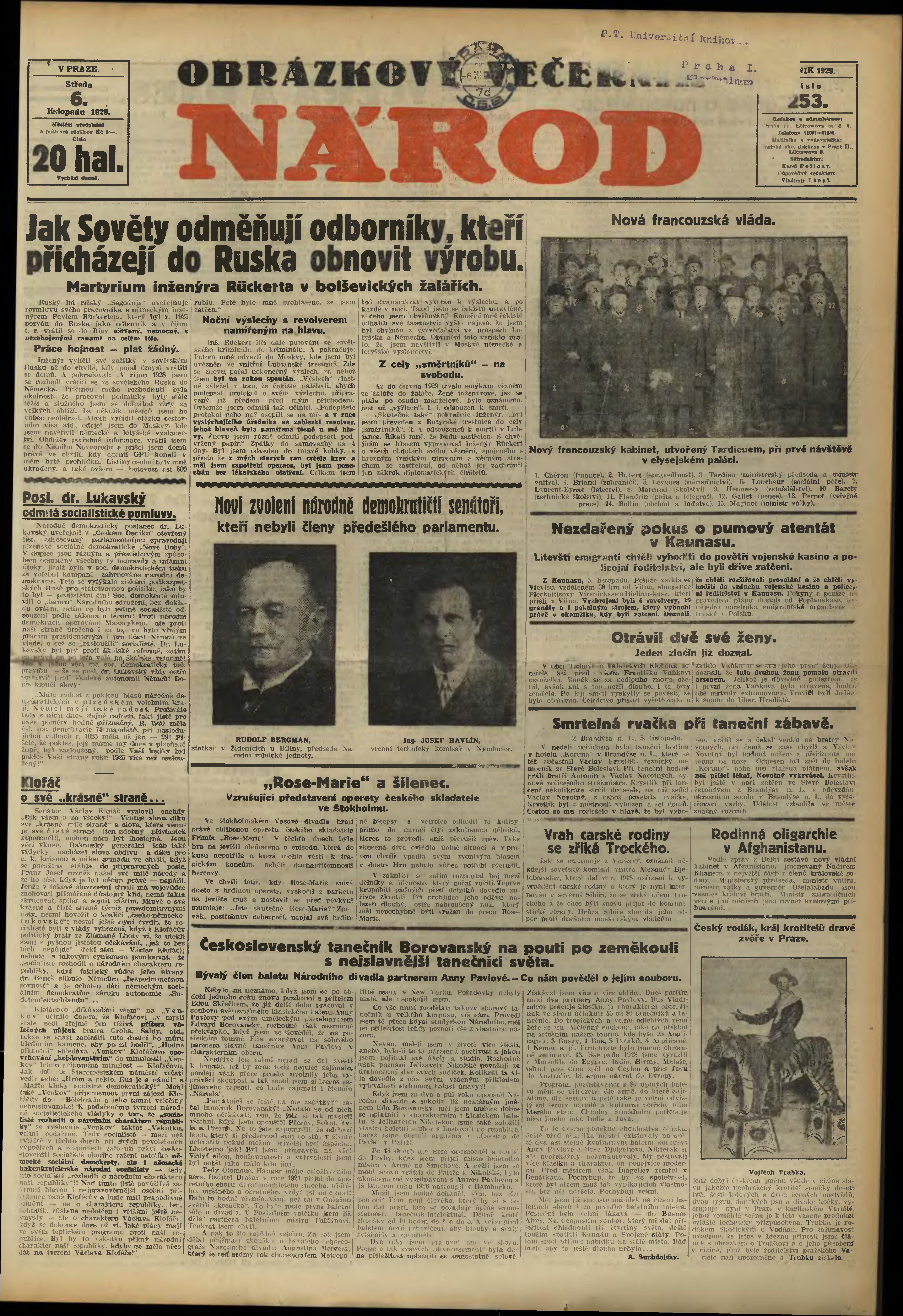 * Datum vydání výtisku: 6.11.1929 Číslo výtisku: 253 Poznámky k výtisku: večerní vydání;