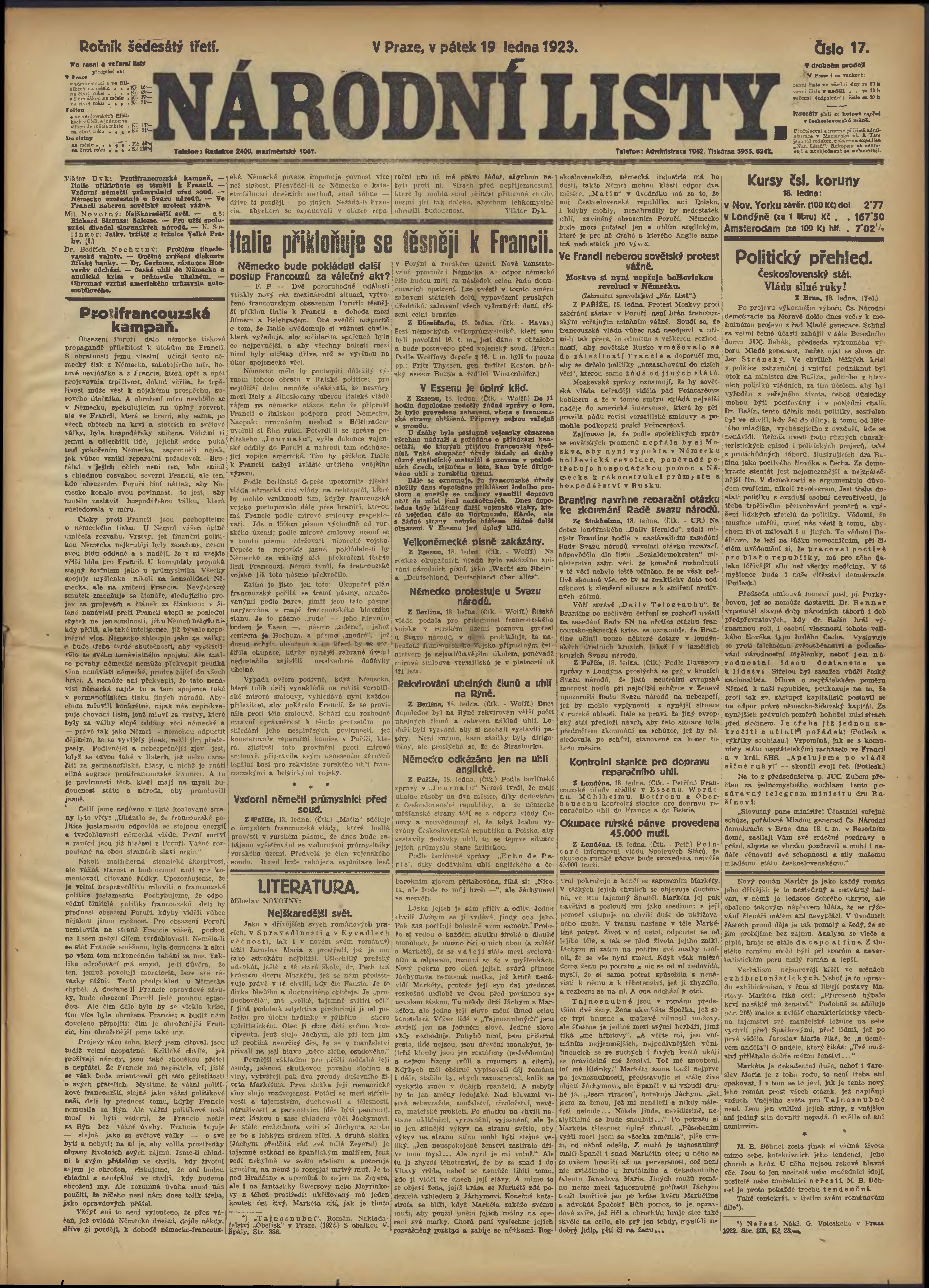 * Datum vydání výtisku: 19.1.1923 Číslo výtisku: 17
