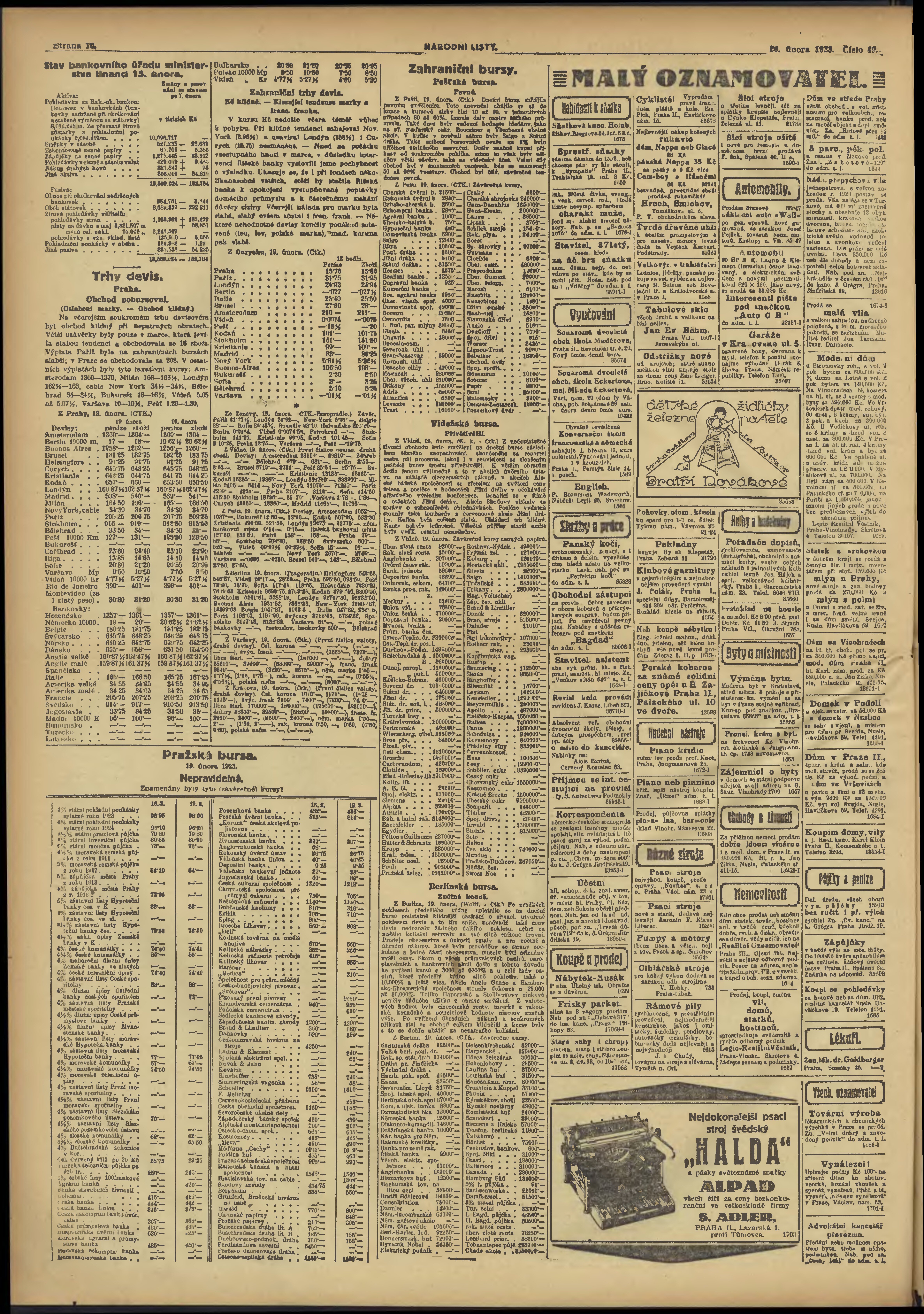 * Datum vydání výtisku: 20.2.1923 Číslo výtisku: 49 Typ výtisku: příloha