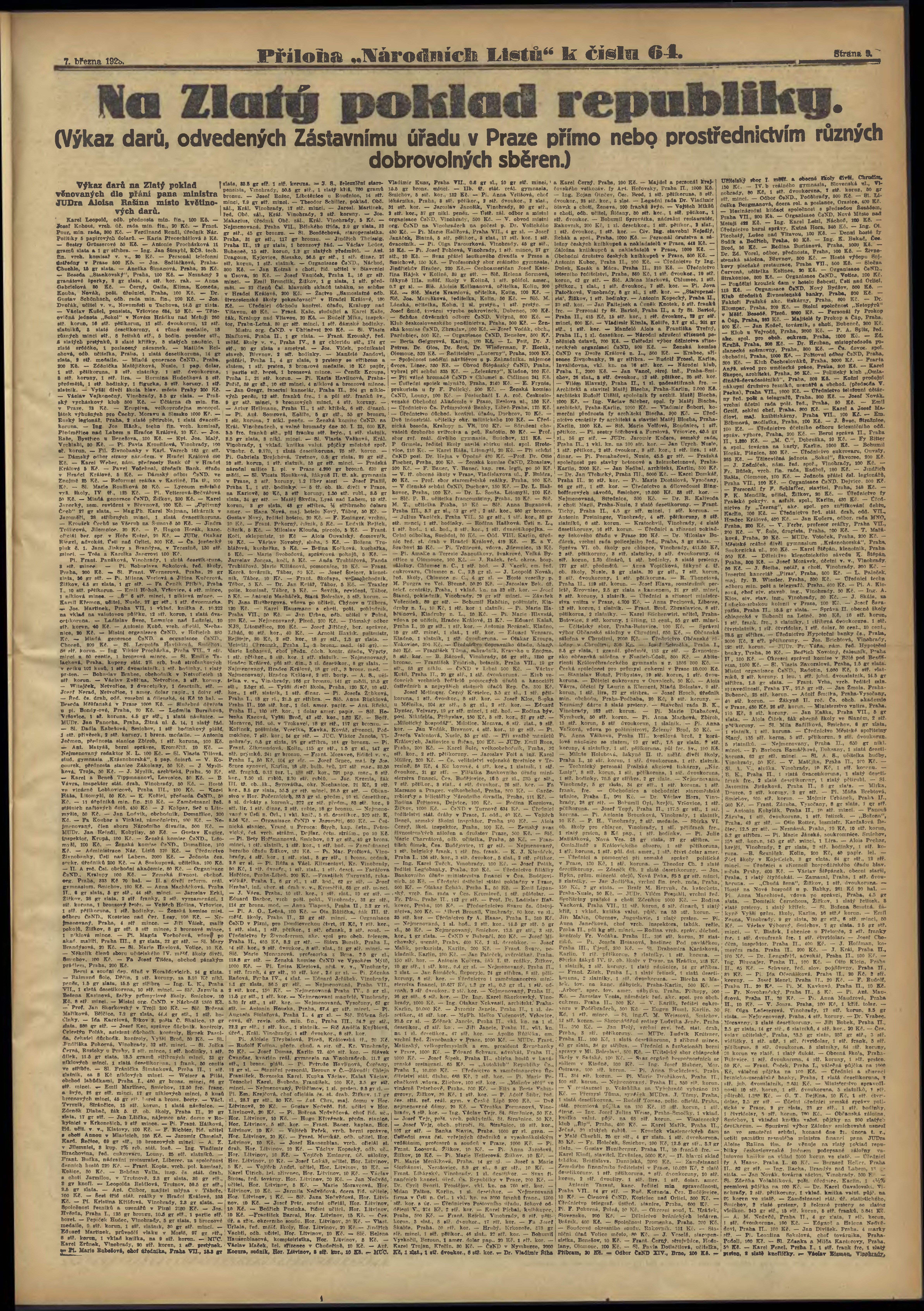 * Datum vydání výtisku: 7.3.1923 Číslo výtisku: 64 Typ výtisku: příloha