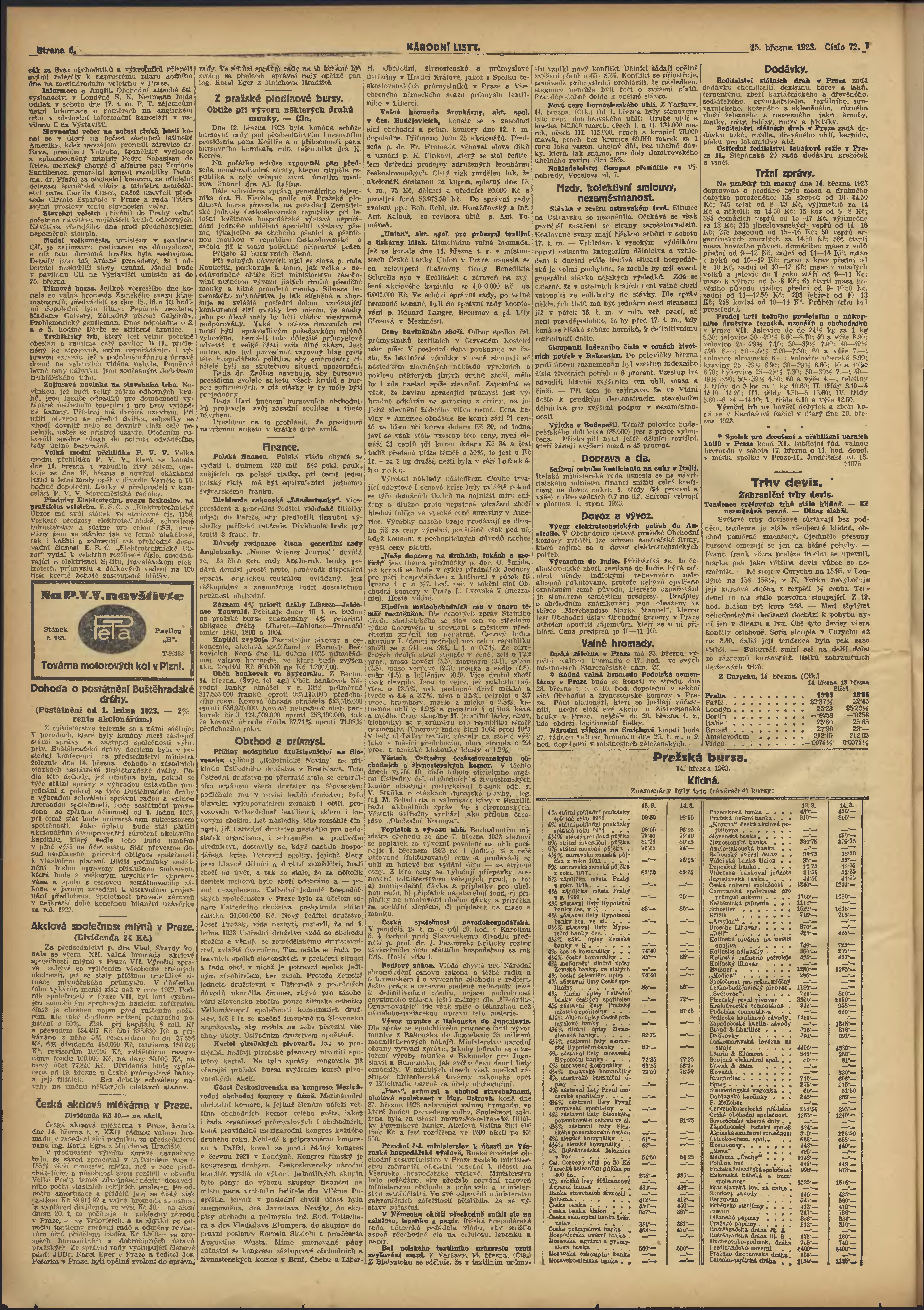 * Datum vydání výtisku: 15.3.1923 Číslo výtisku: 72