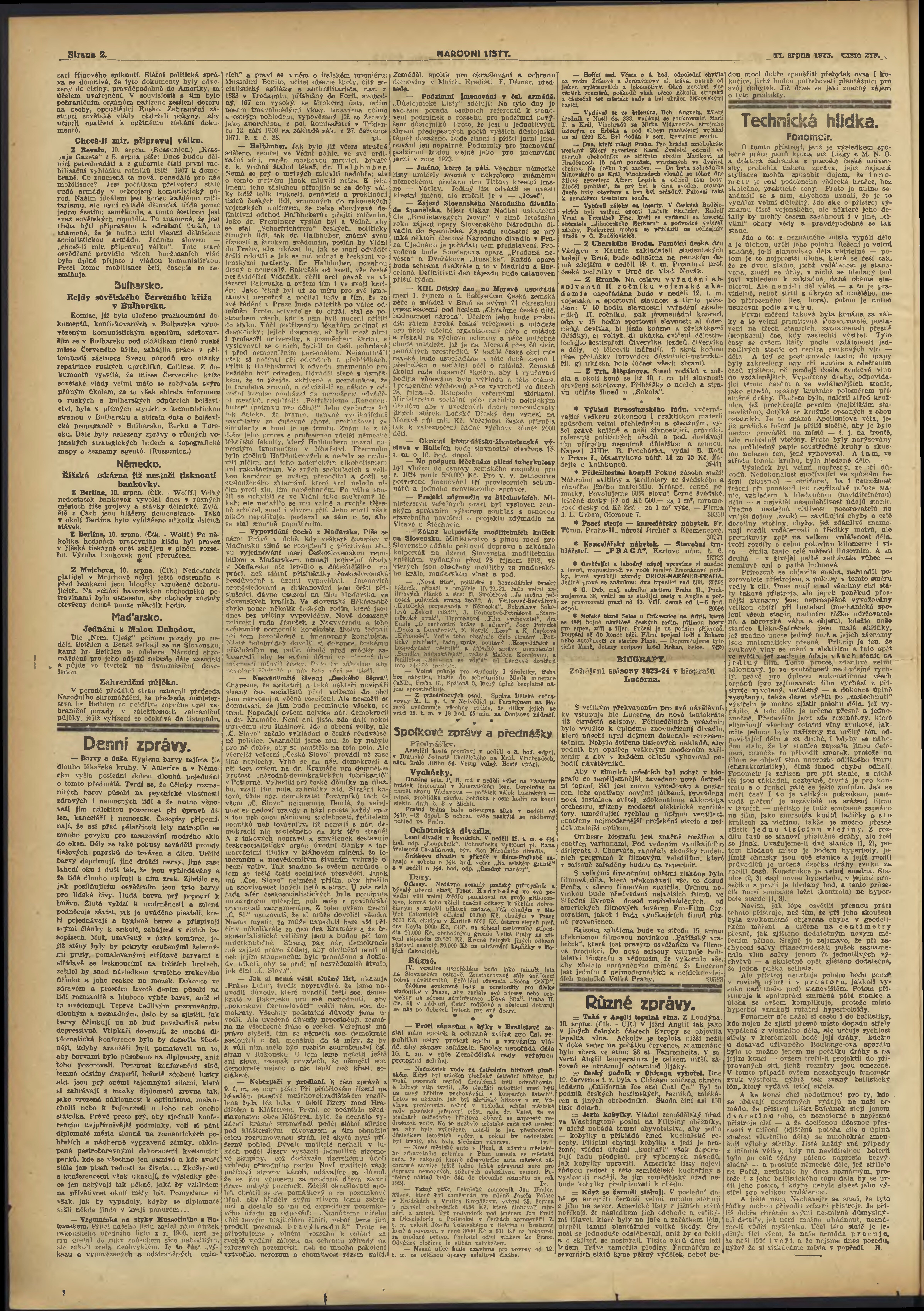 * Datum vydání výtisku: 11.8.1923 Číslo výtisku: 219