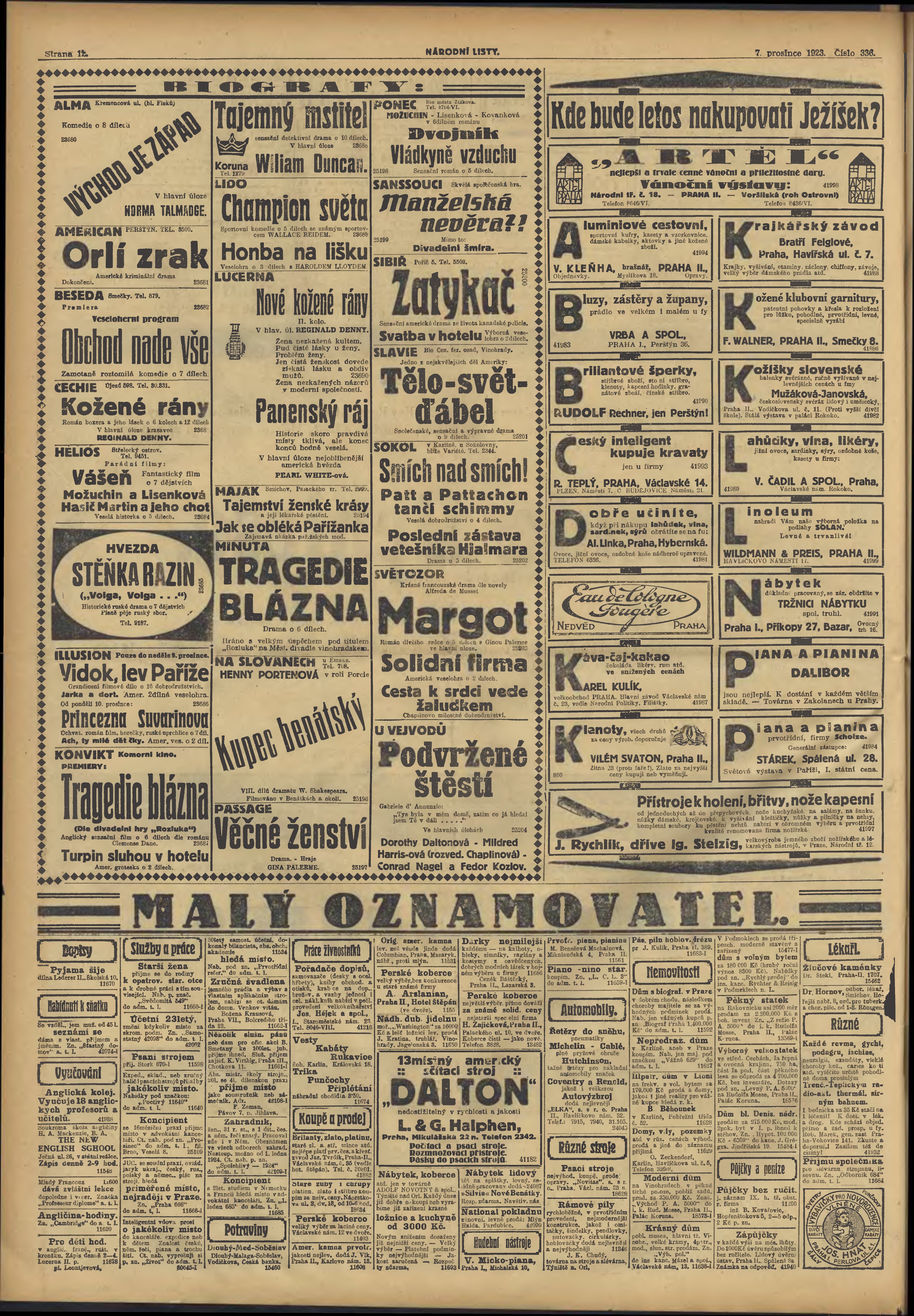 * Datum vydání výtisku: 7.12.1923 Číslo výtisku: 336 Typ výtisku: příloha