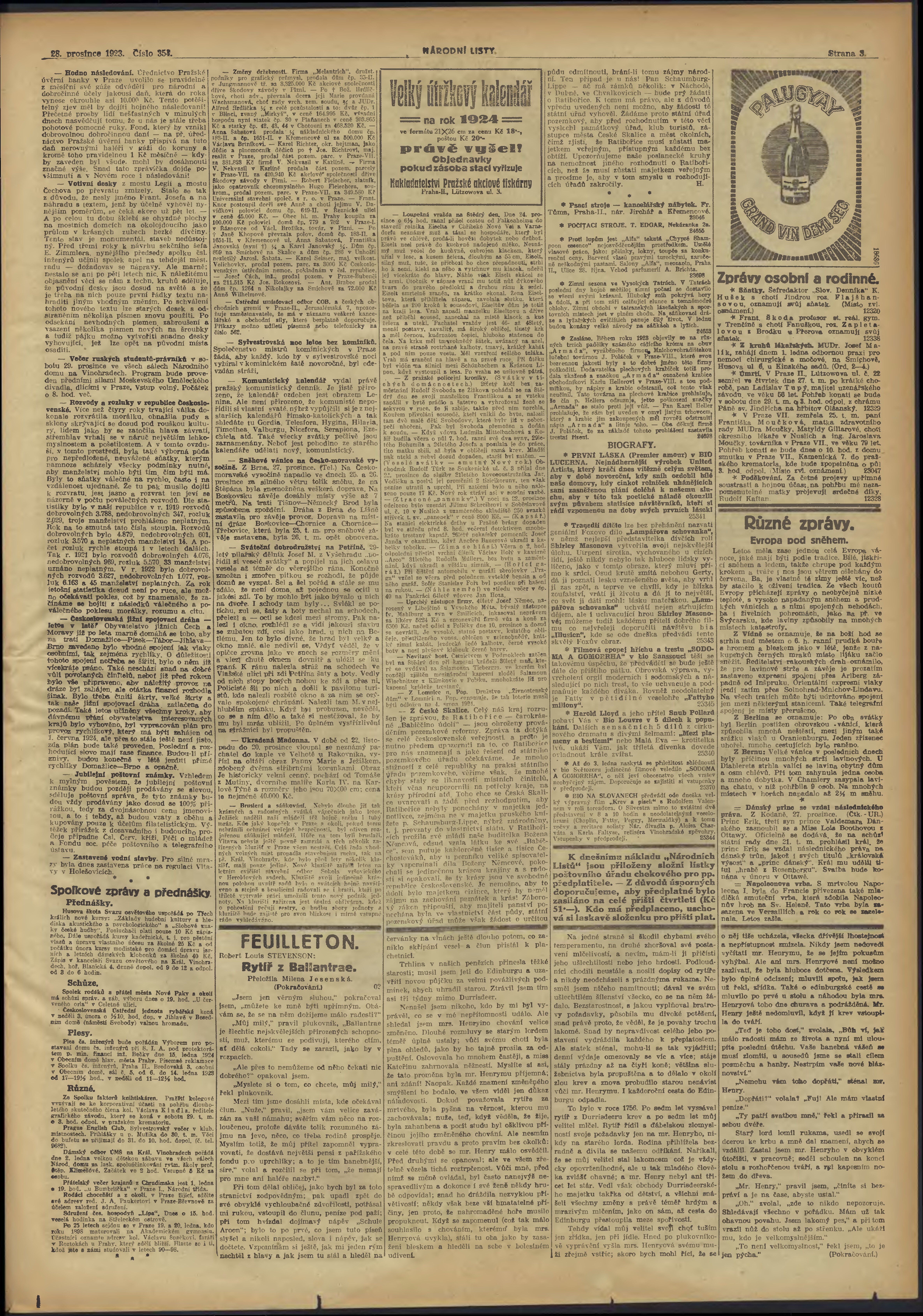 * Datum vydání výtisku: 28.12.1923 Číslo výtisku: 354