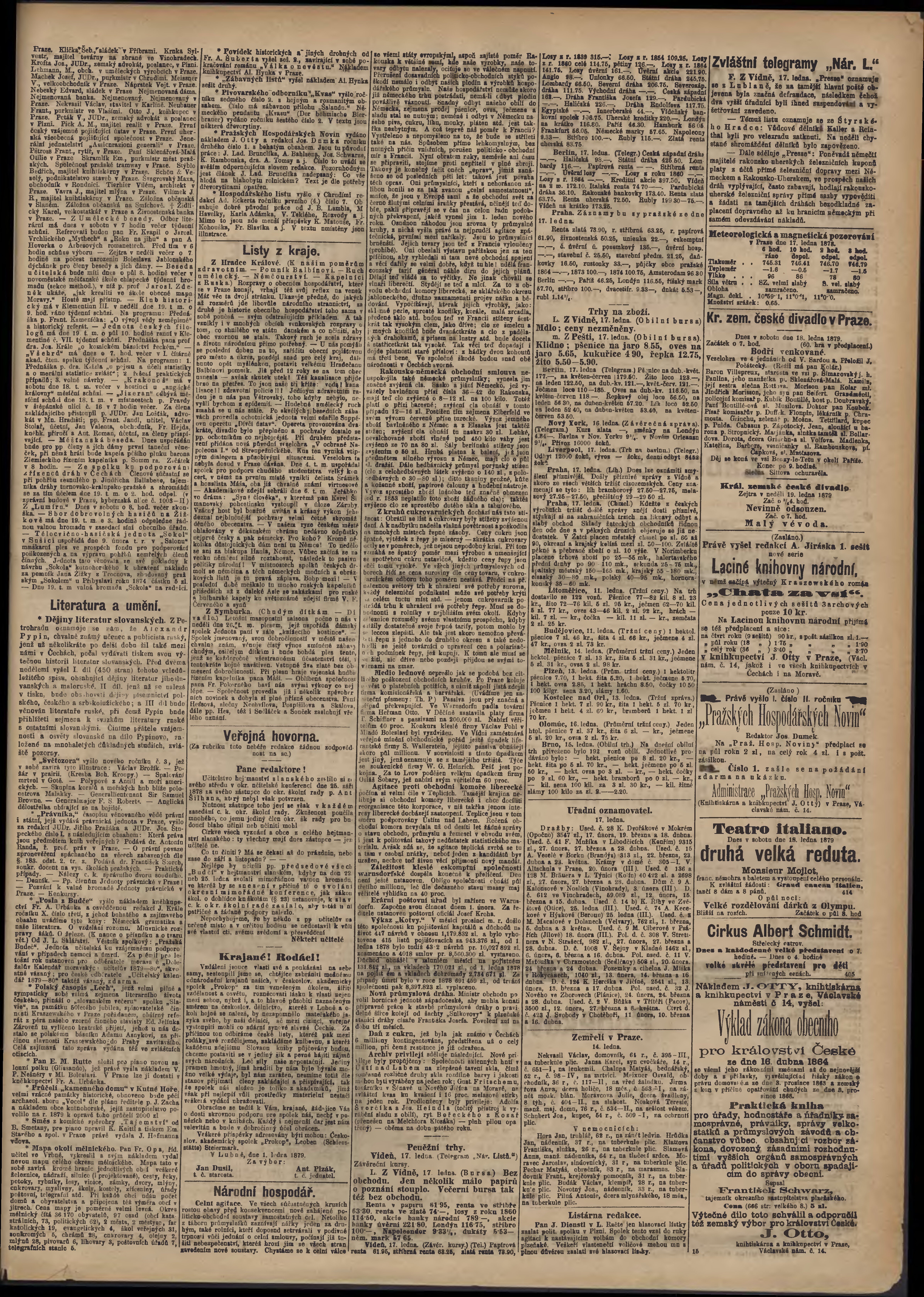 * Datum vydání výtisku: 18.1.1879 Číslo výtisku: 15