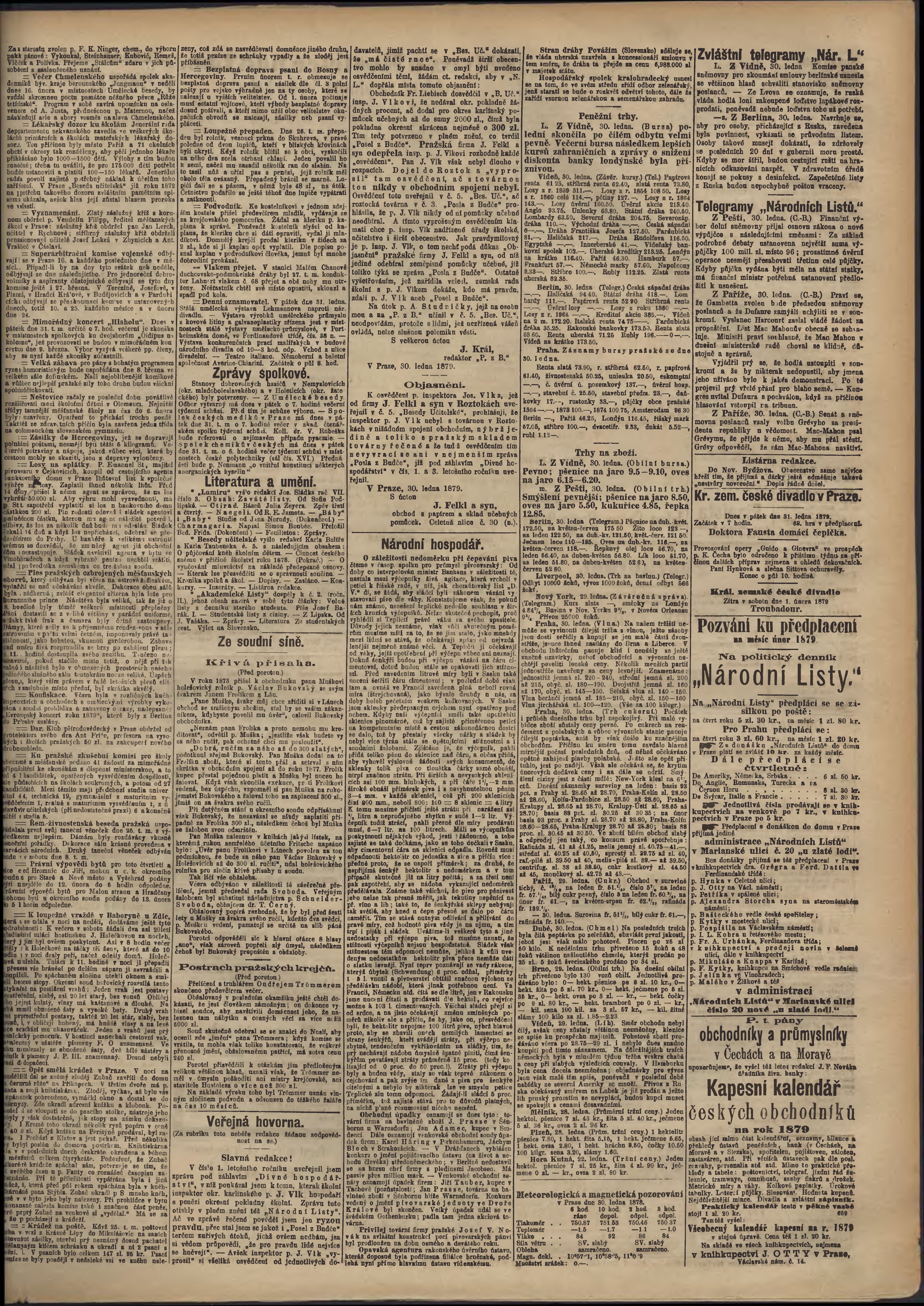 * Datum vydání výtisku: 31.1.1879 Číslo výtisku: 26
