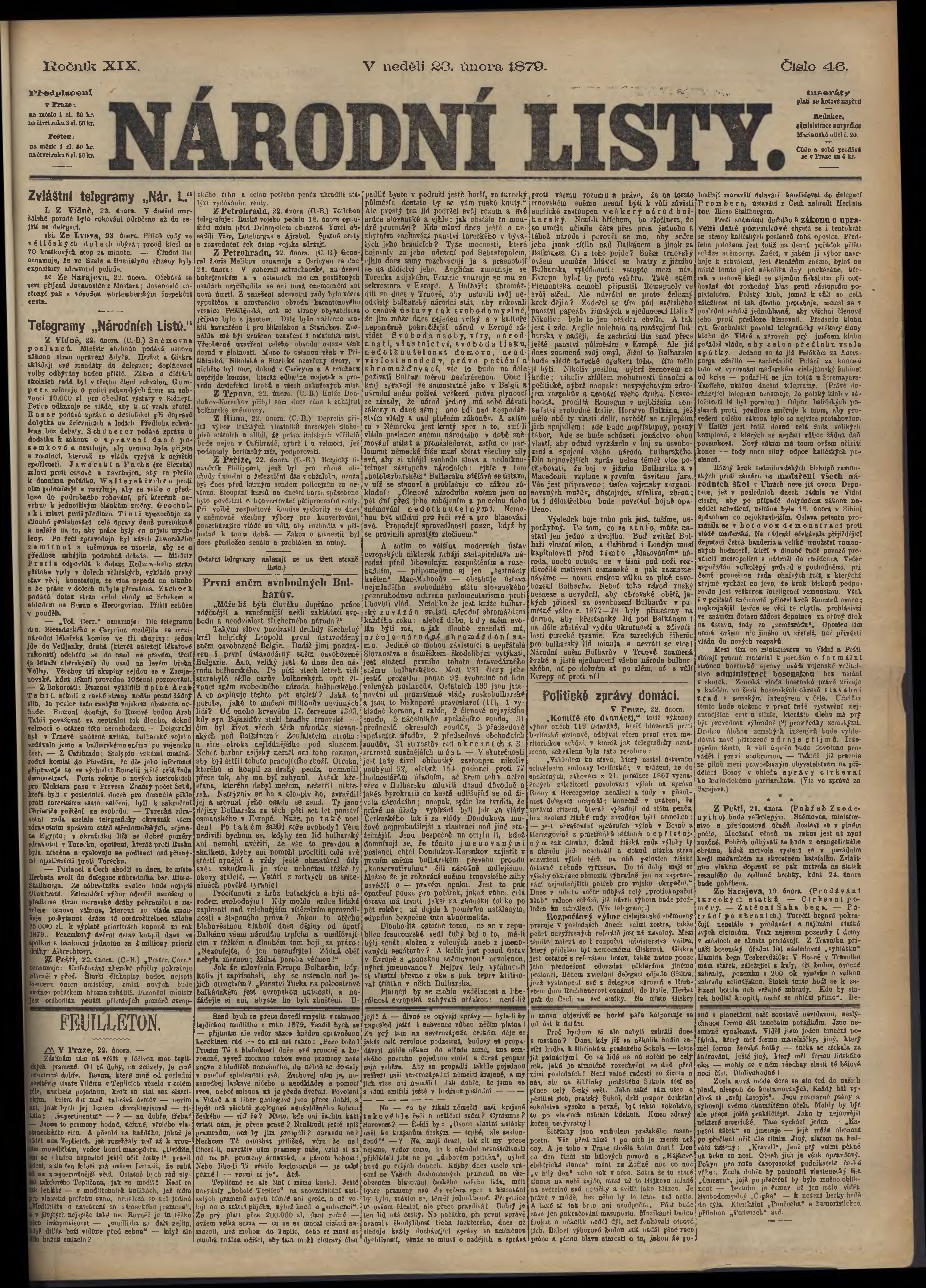 * Datum vydání výtisku: 23.2.1879 Číslo výtisku: 46
