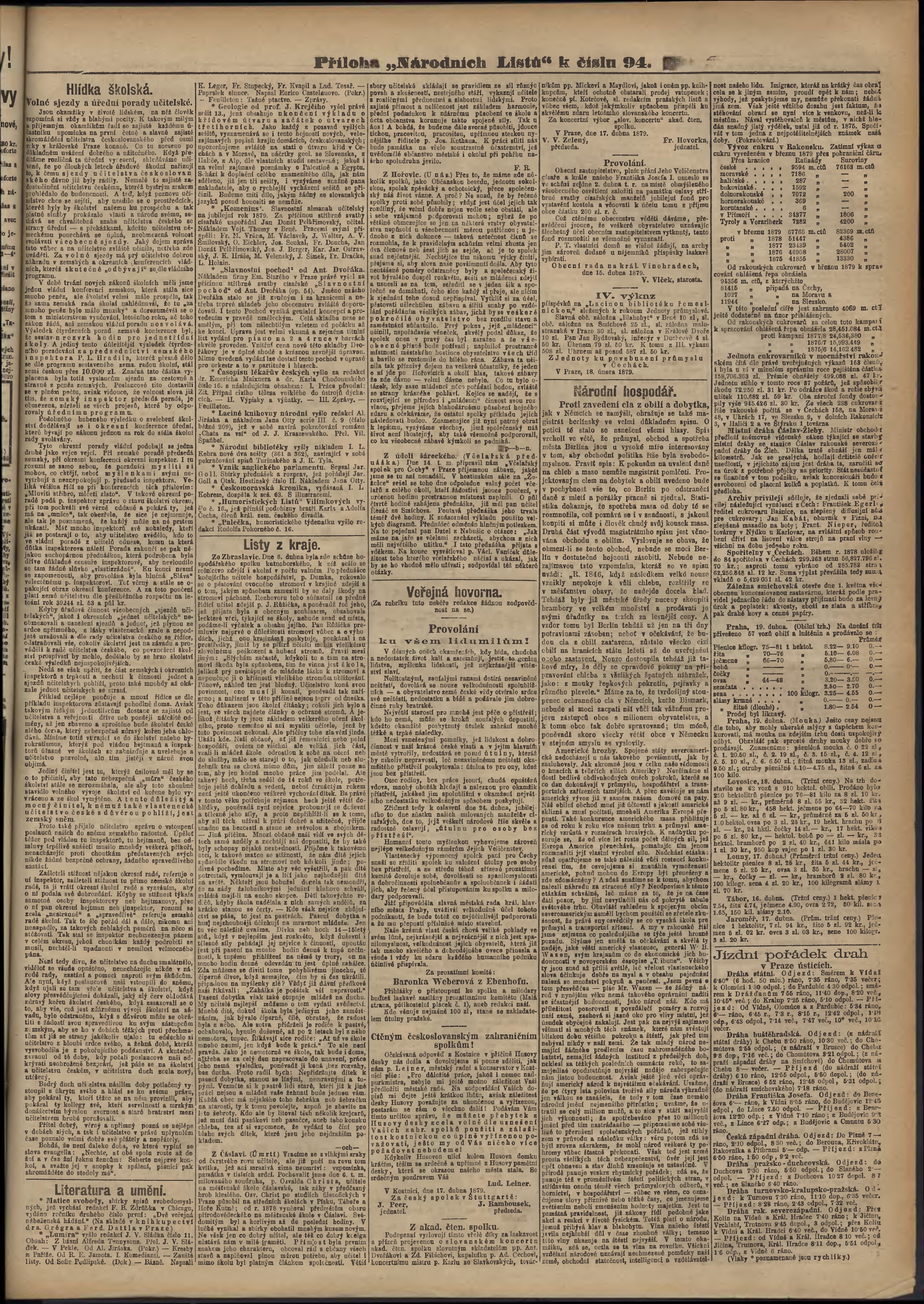 * Datum vydání výtisku: 20.4.1879 Číslo výtisku: 94 Typ výtisku: příloha