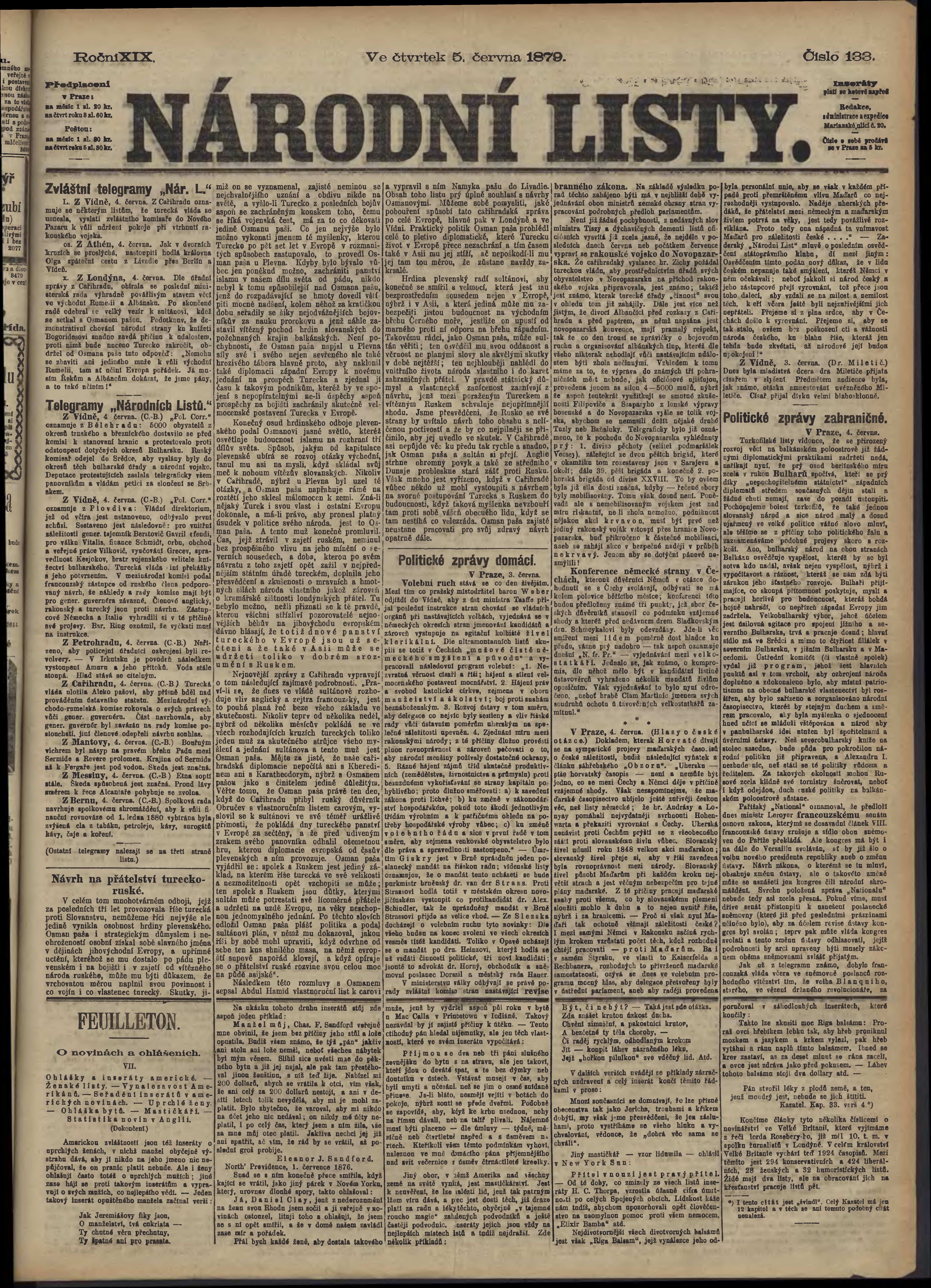 * Datum vydání výtisku: 5.6.1879 Číslo výtisku: 133