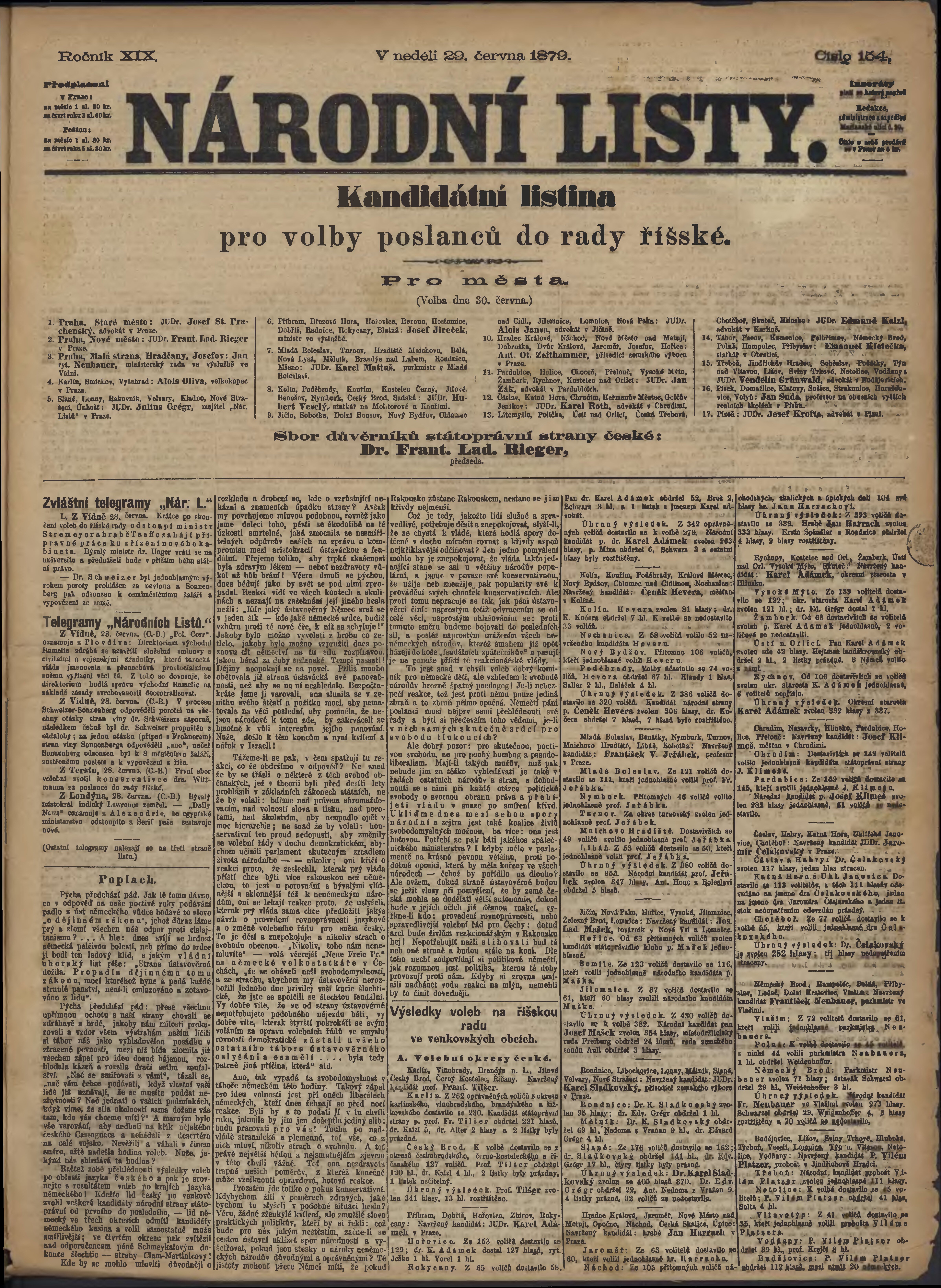 * Datum vydání výtisku: 29.6.1879 Číslo výtisku: 154