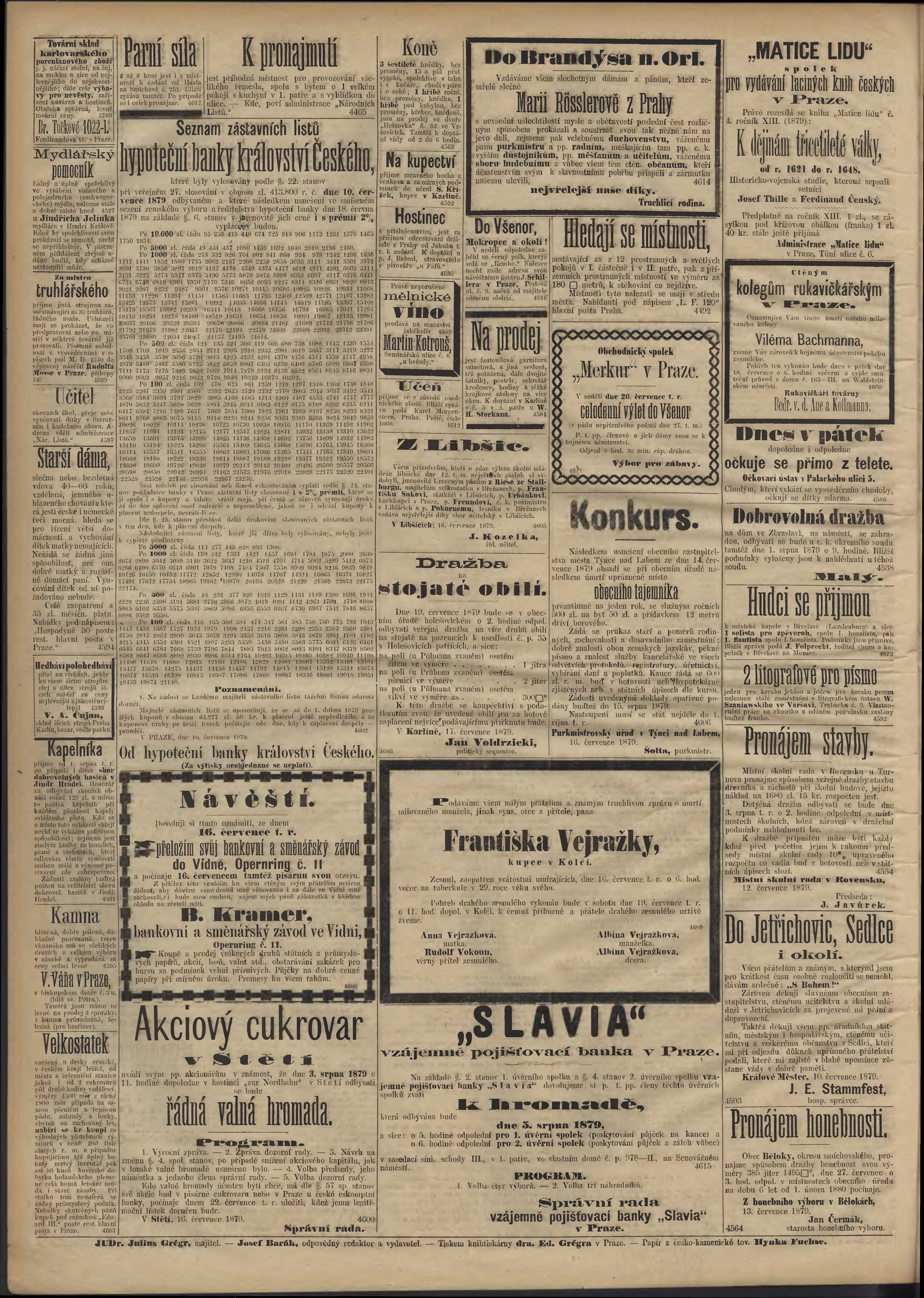 * Datum vydání výtisku: 18.7.1879 Číslo výtisku: 170