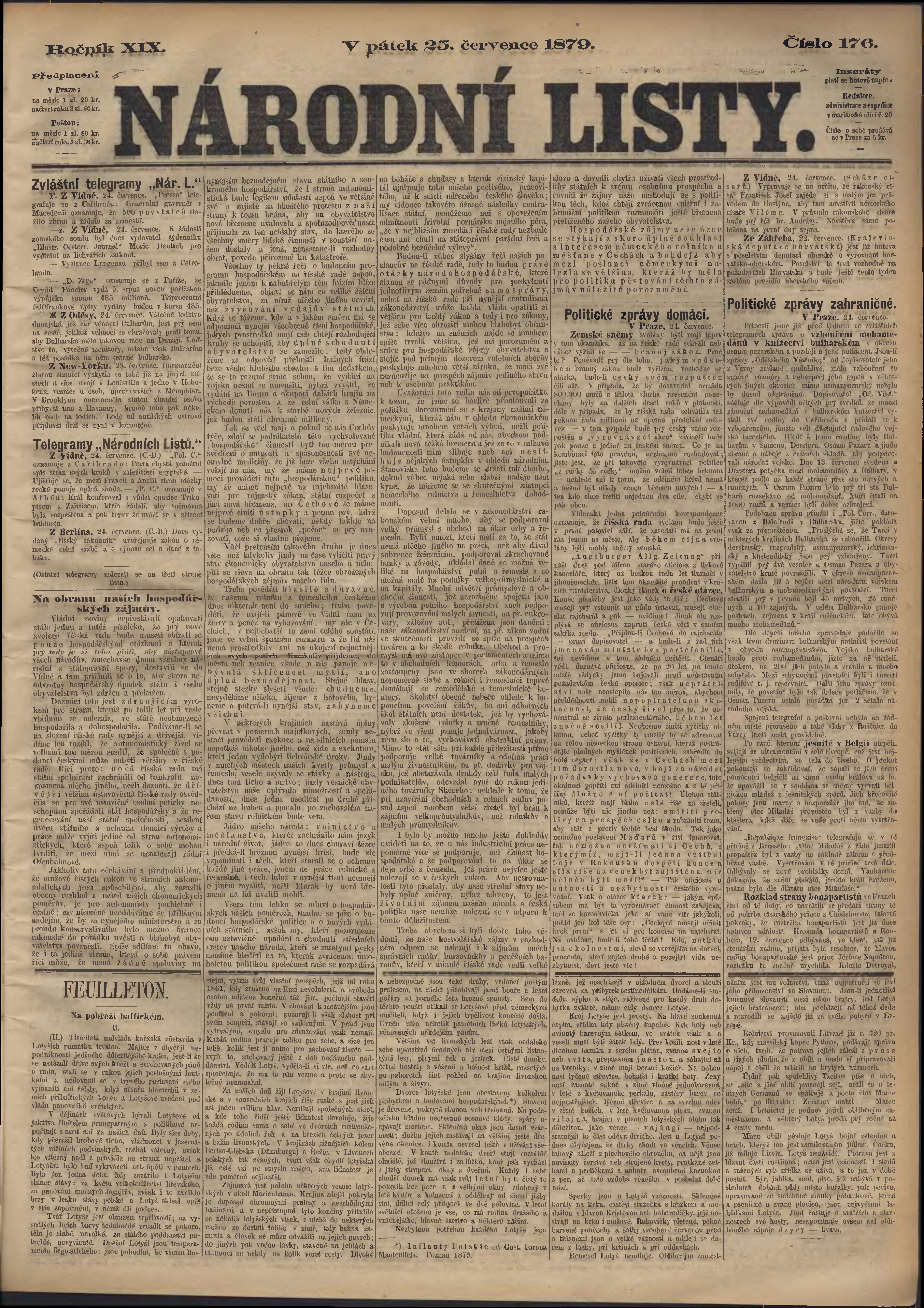 * Datum vydání výtisku: 25.7.1879 Číslo výtisku: 176