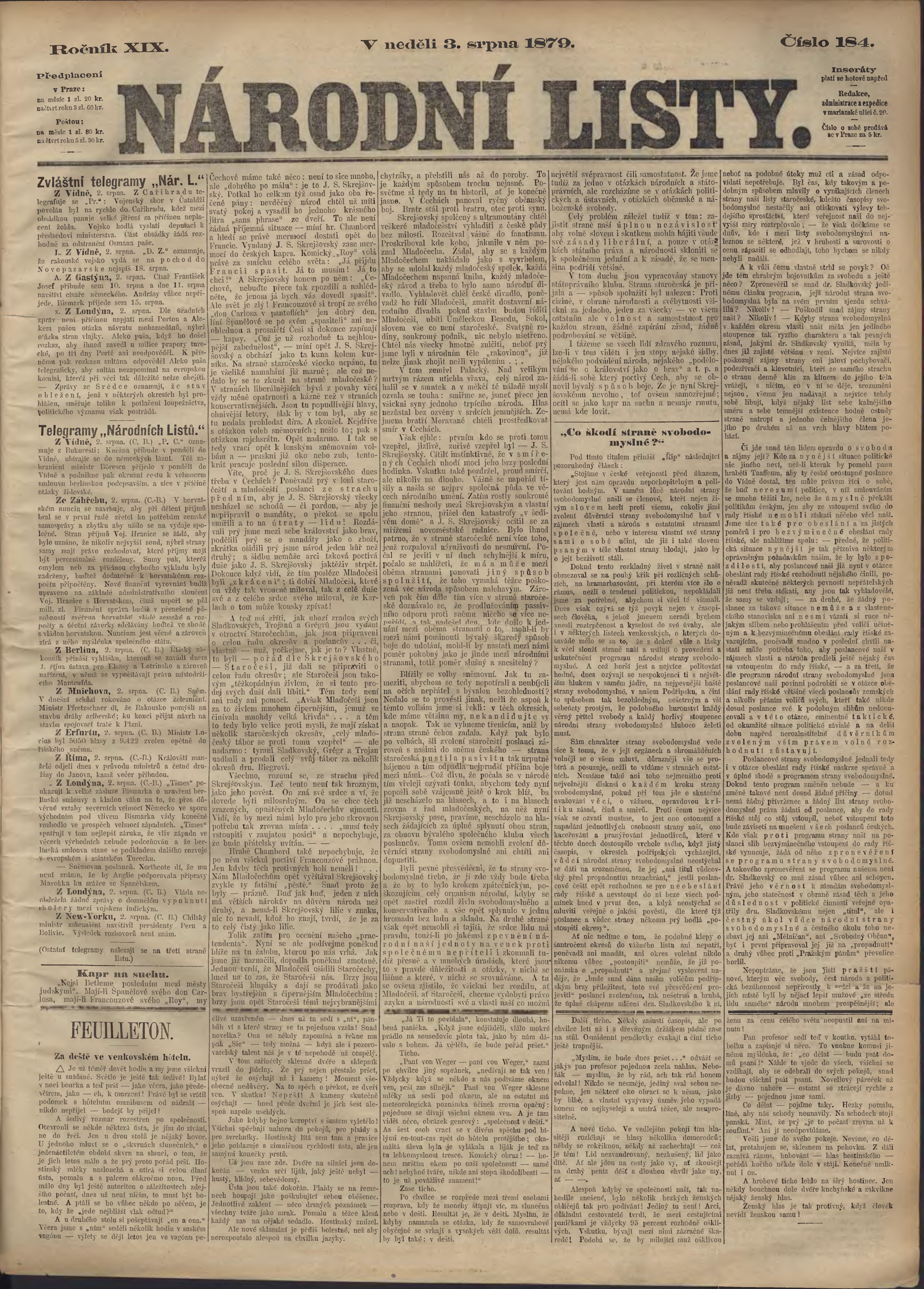 * Datum vydání výtisku: 3.8.1879 Číslo výtisku: 184