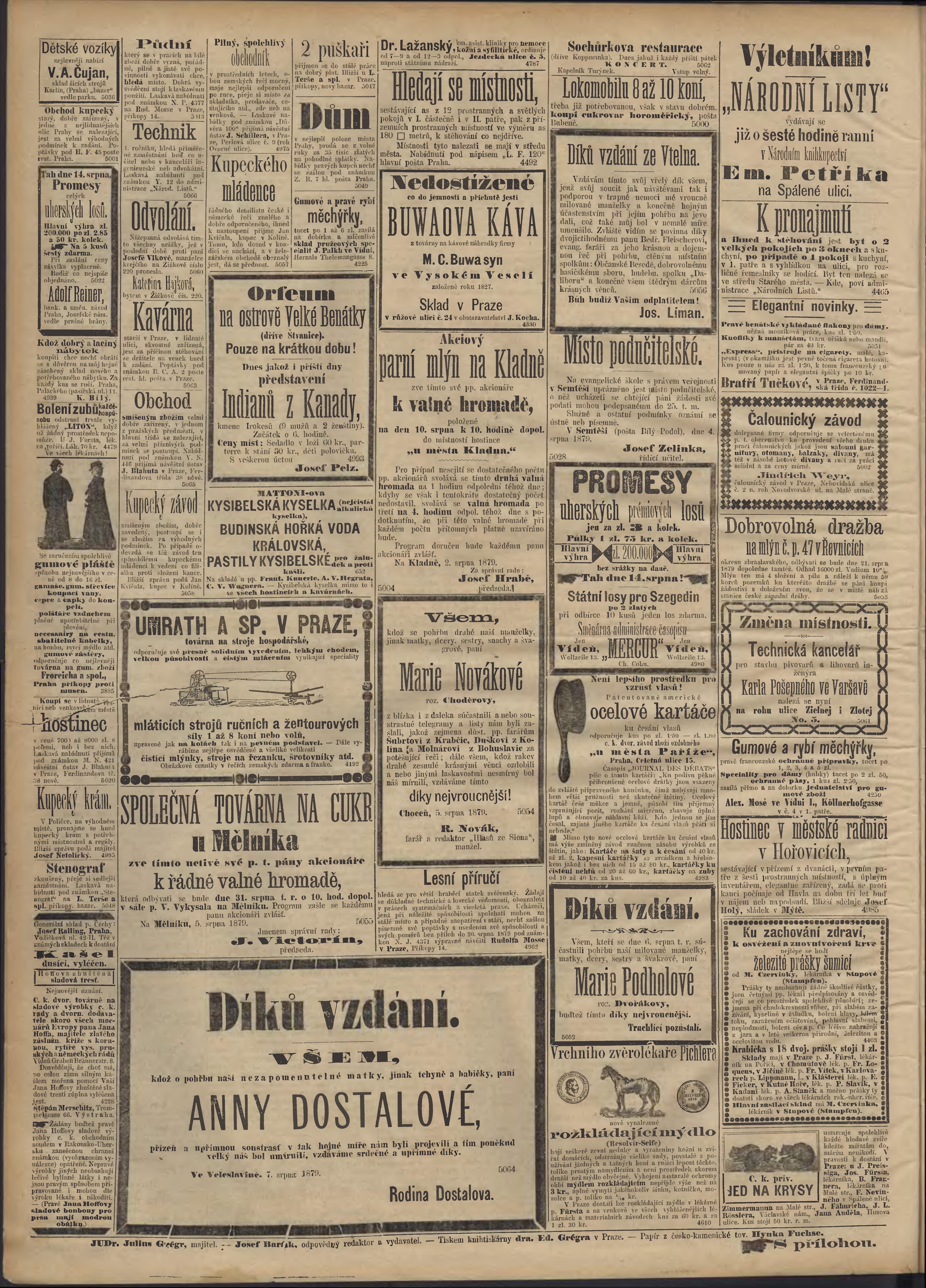 * Datum vydání výtisku: 8.8.1879 Číslo výtisku: 188