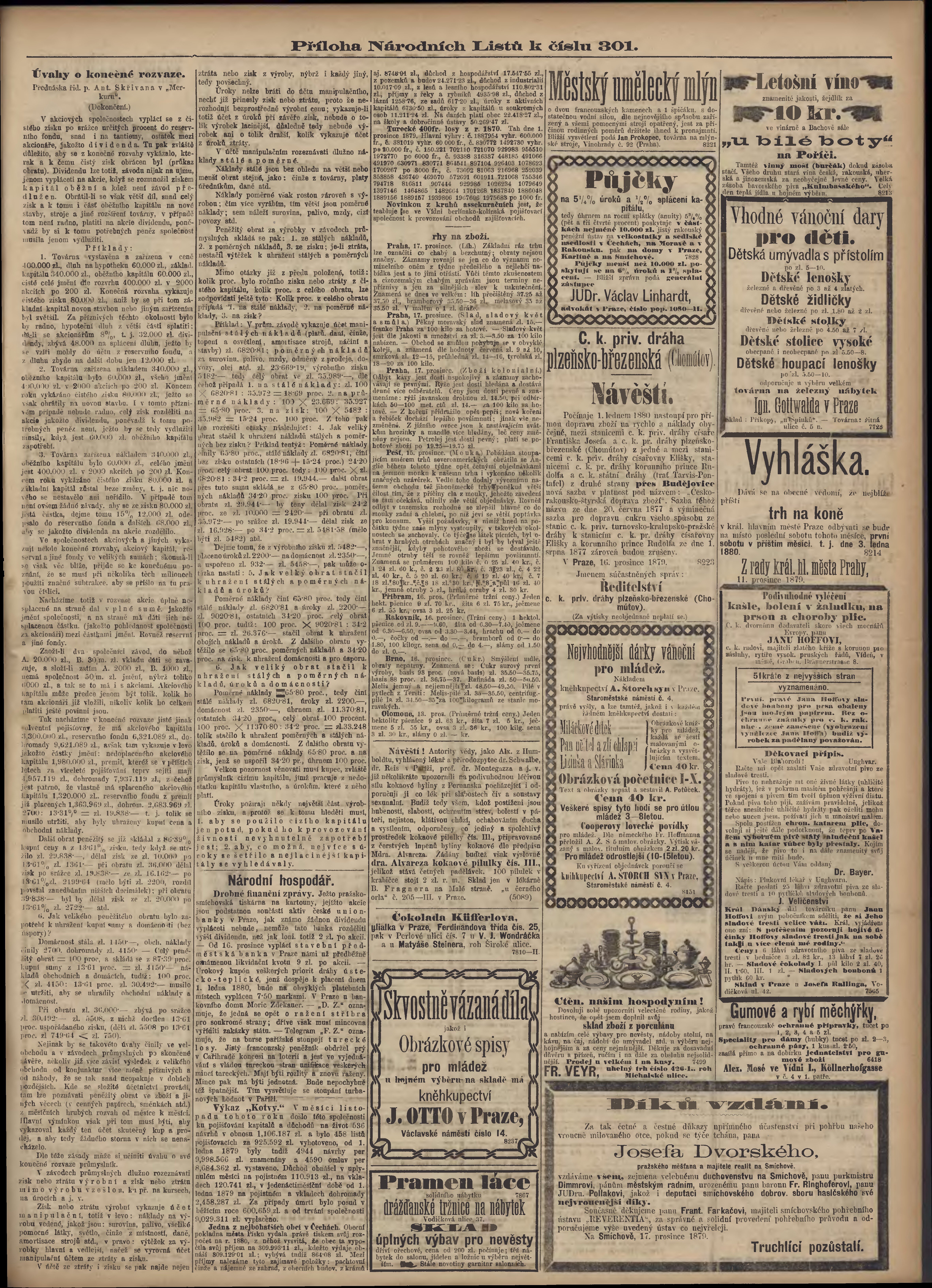 * Datum vydání výtisku: 18.12.1879 Číslo výtisku: 301 Typ výtisku: příloha