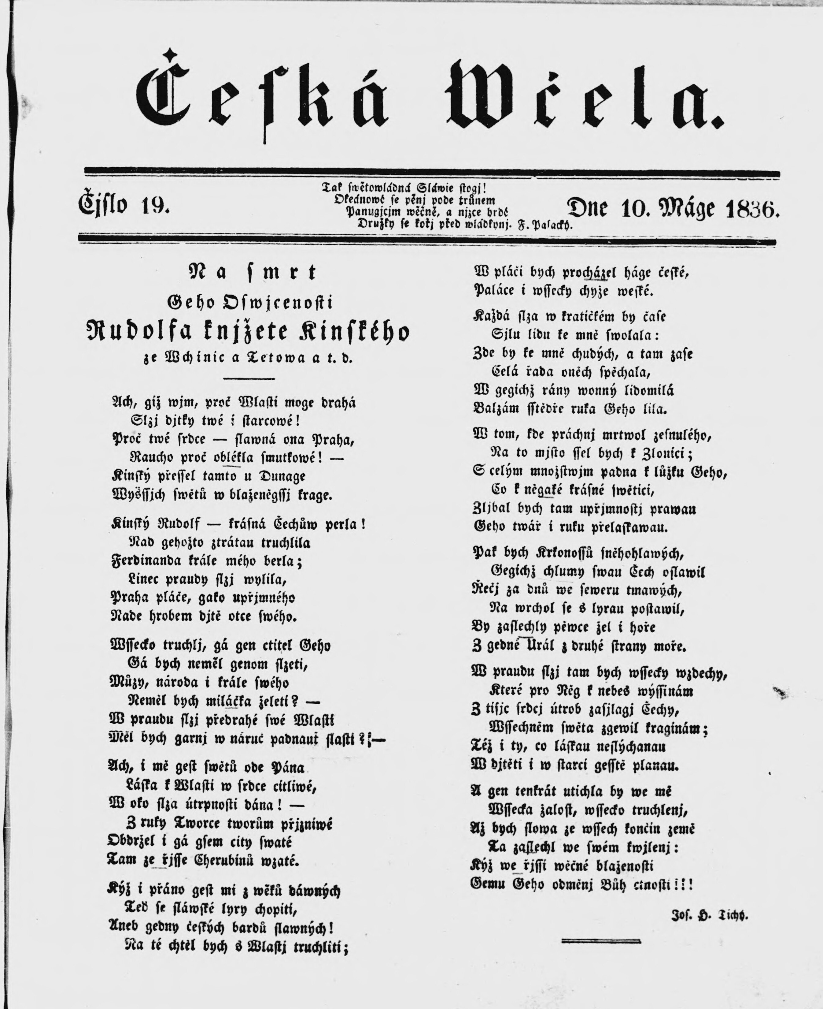 * Datum vydání výtisku: 10.5.1836 Číslo výtisku: 19