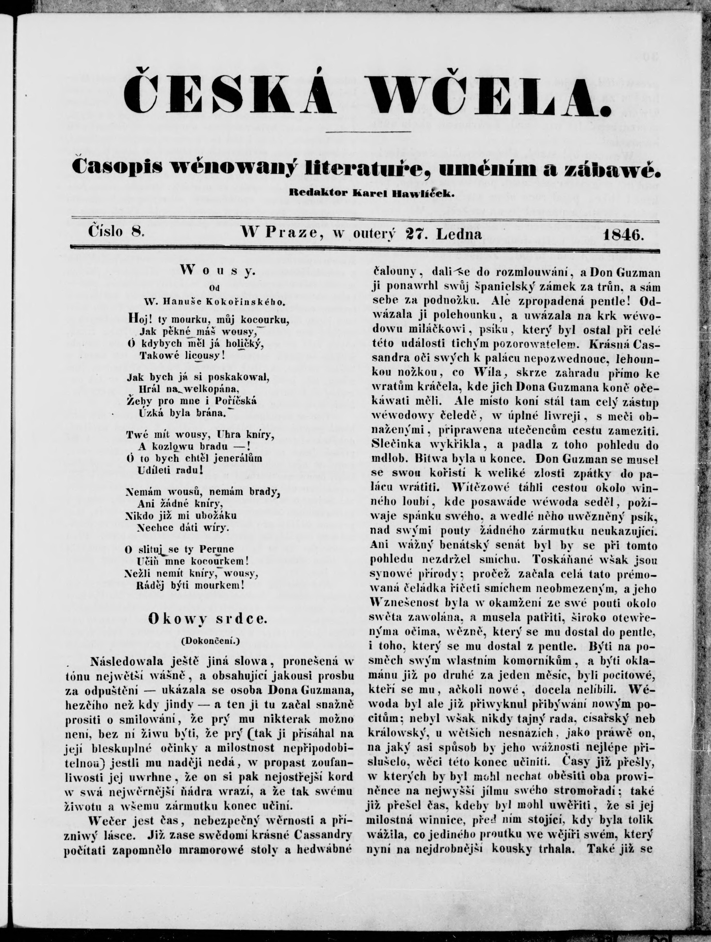 * Datum vydání výtisku: 27.1.1846 Číslo výtisku: 8