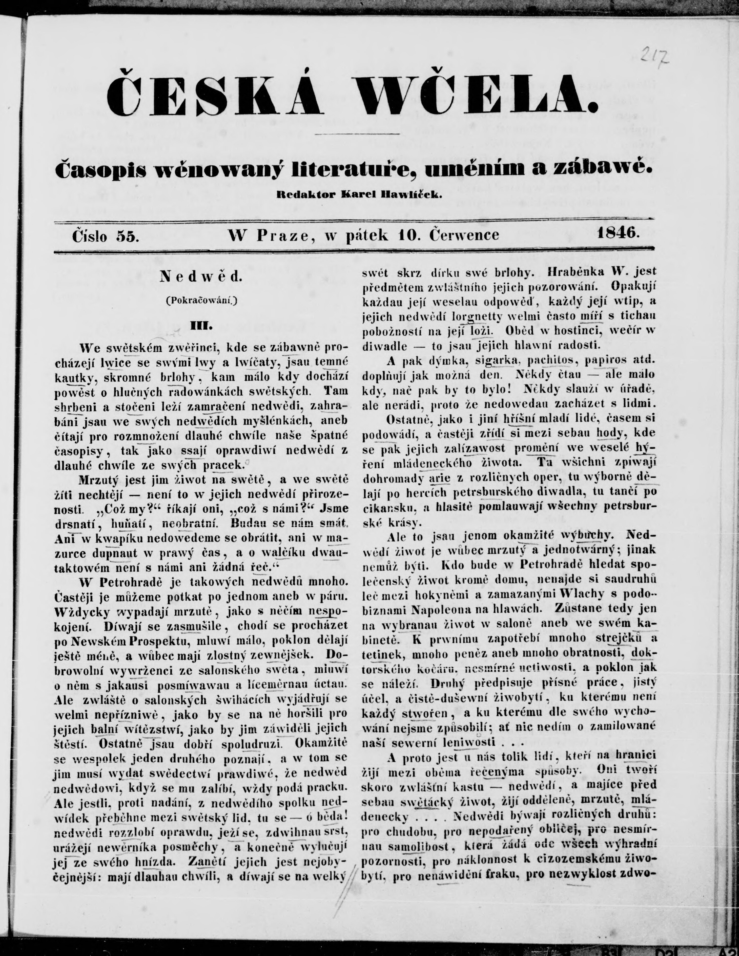 * Datum vydání výtisku: 10.7.1846 Číslo výtisku: 55