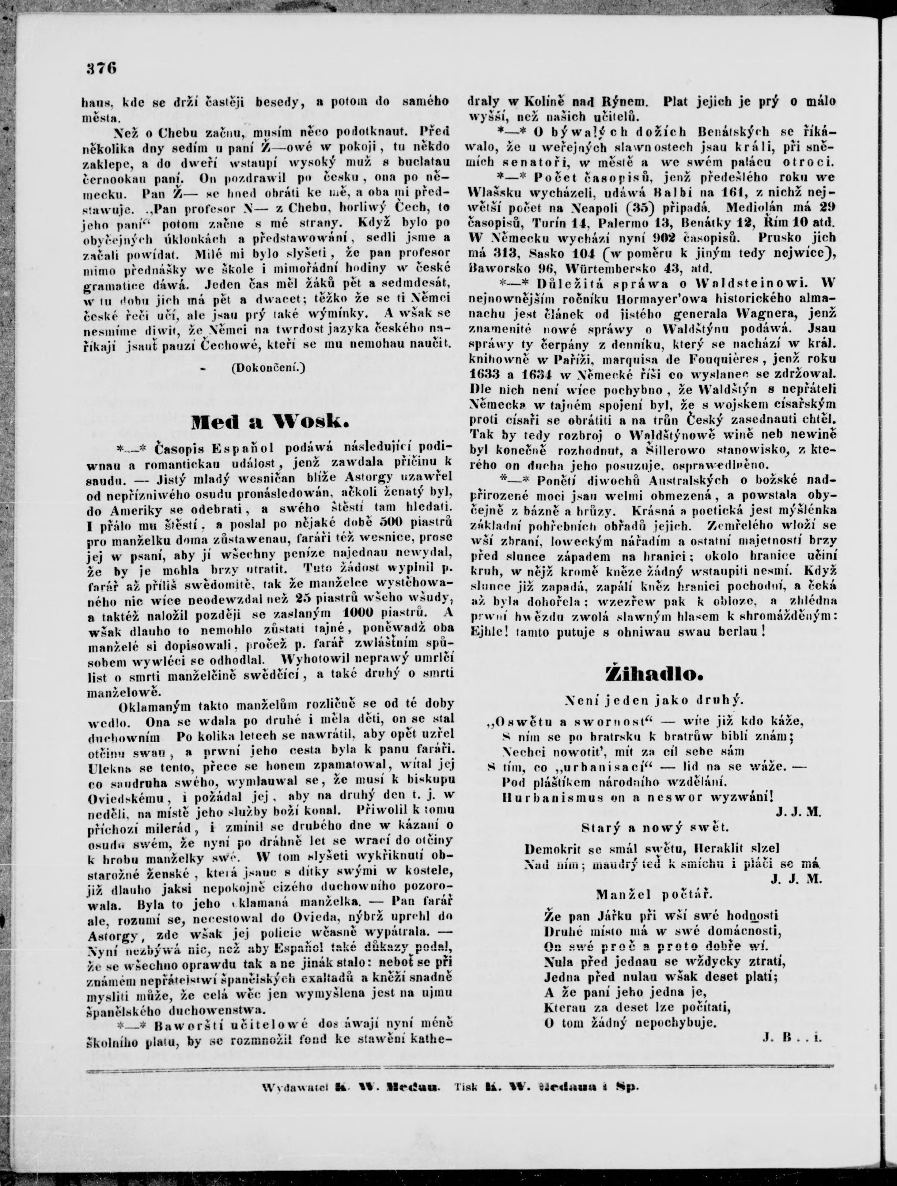 * Datum vydání ročníku: 1846 Číslo ročníku: 13