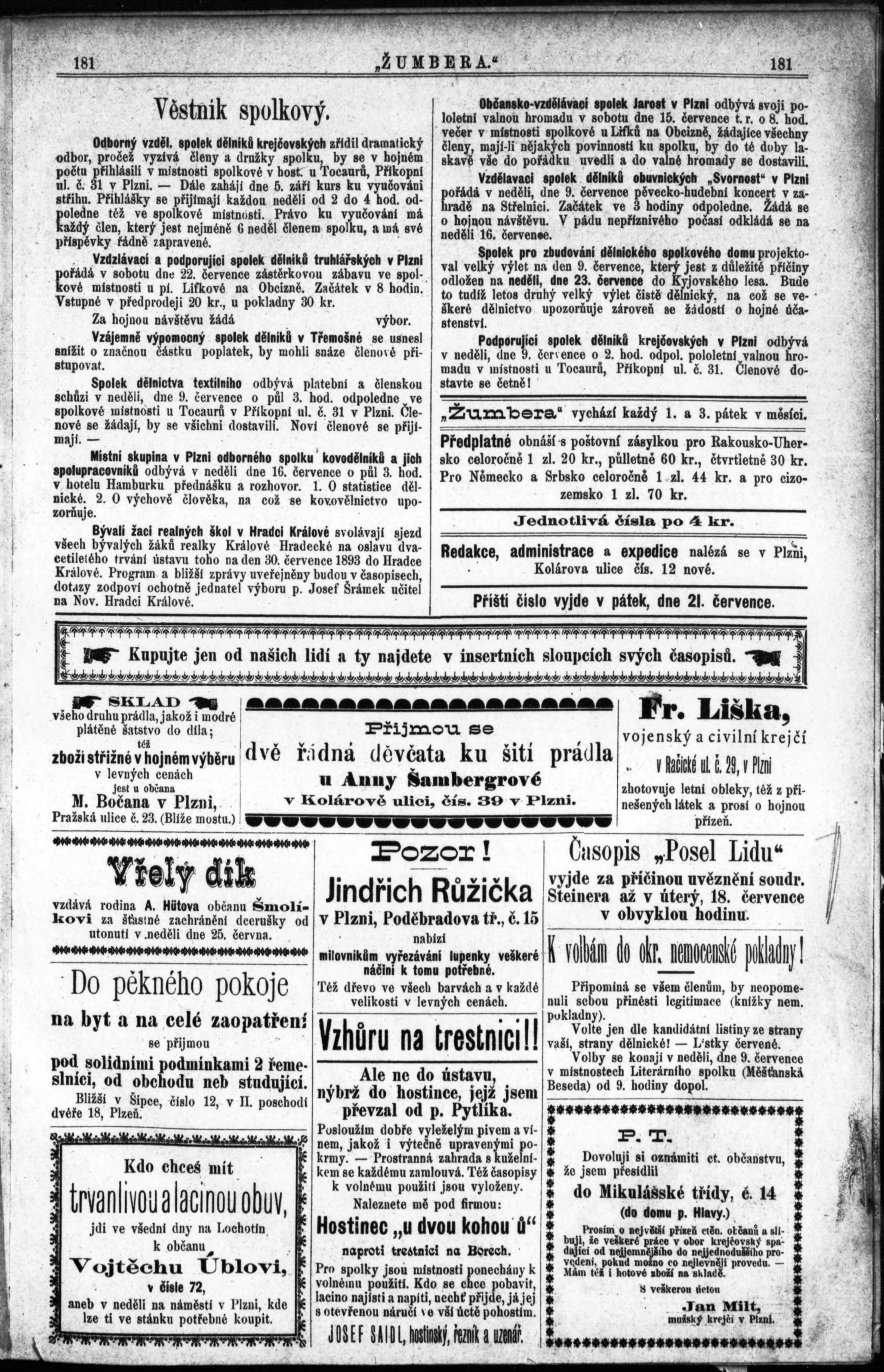 * Datum vydání výtisku: 7.7.1893 Číslo výtisku: 24