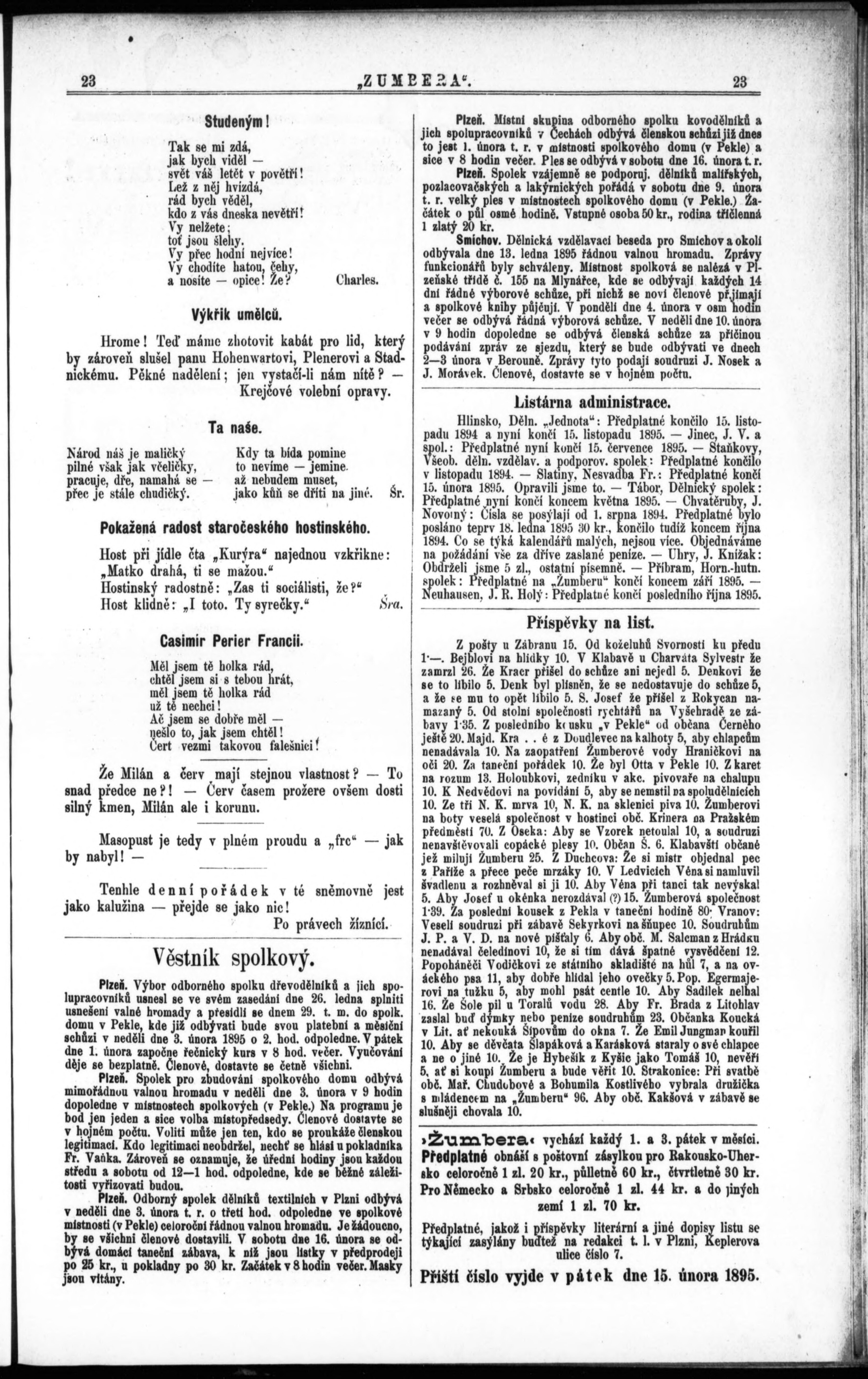 * Datum vydání výtisku: 1.2.1895 Číslo výtisku: 3
