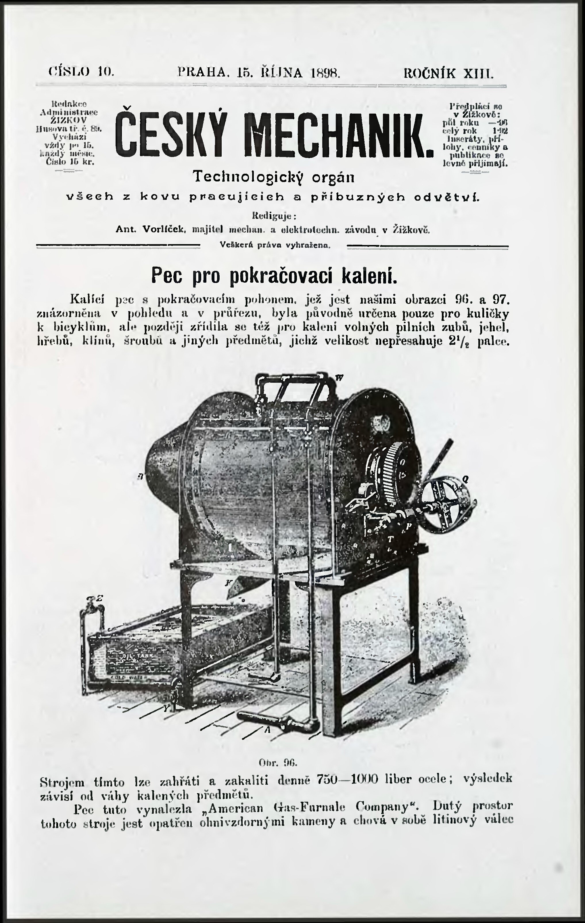 * Datum vydání výtisku: 15.10.1898 Číslo výtisku: 10