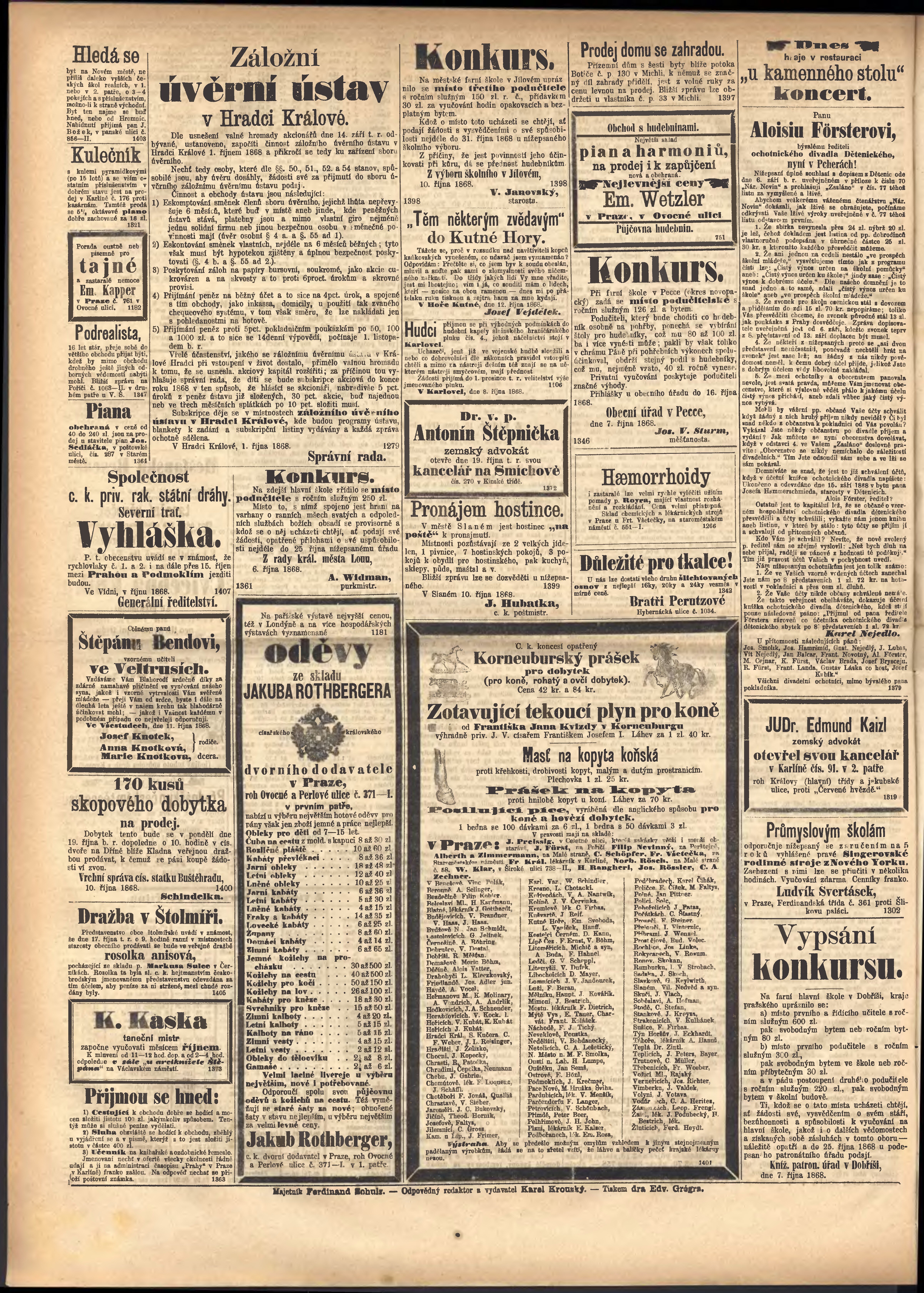 * Datum vydání výtisku: 14.10.1868 Číslo výtisku: 88