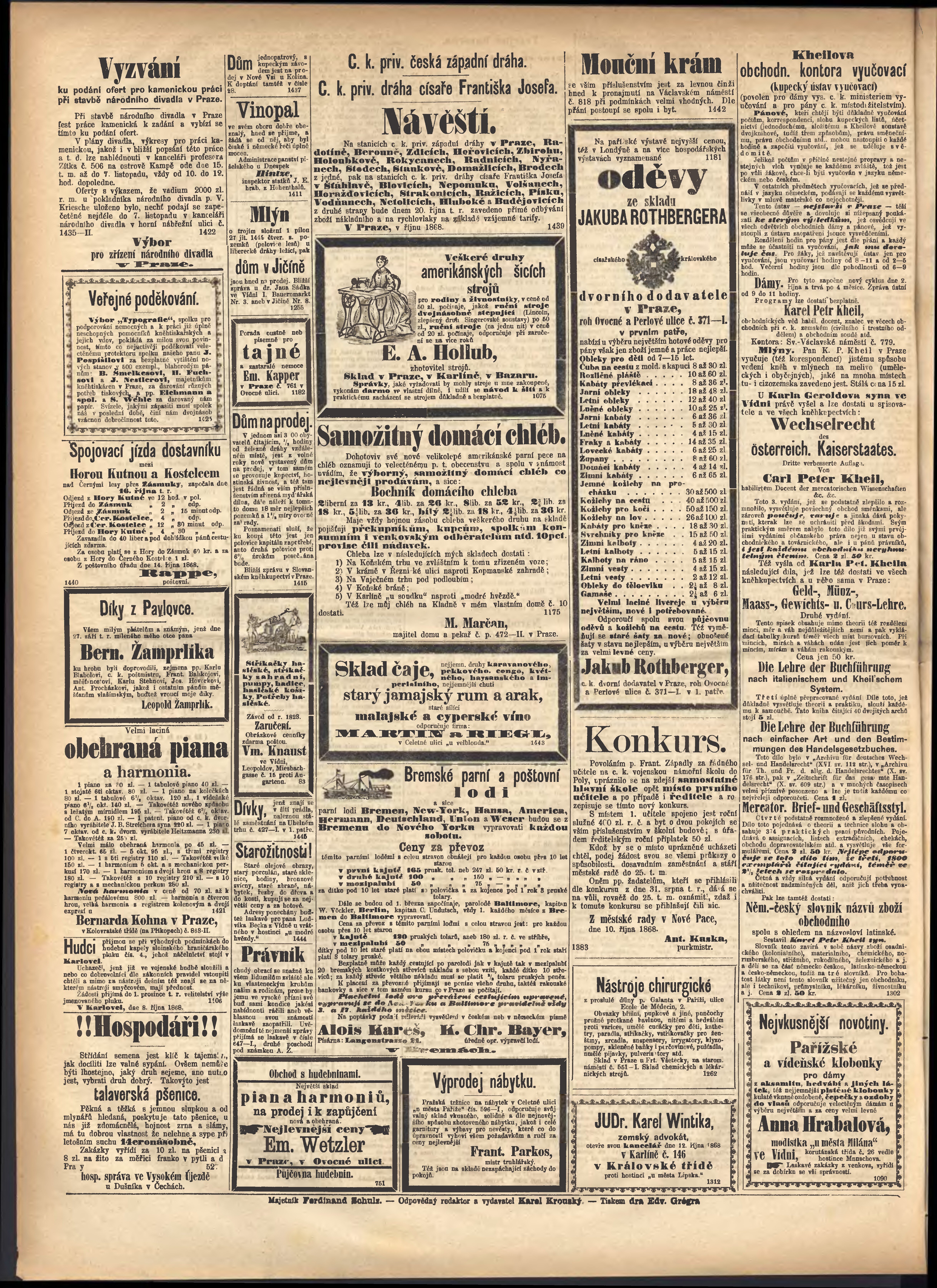 * Datum vydání výtisku: 17.10.1868 Číslo výtisku: 91