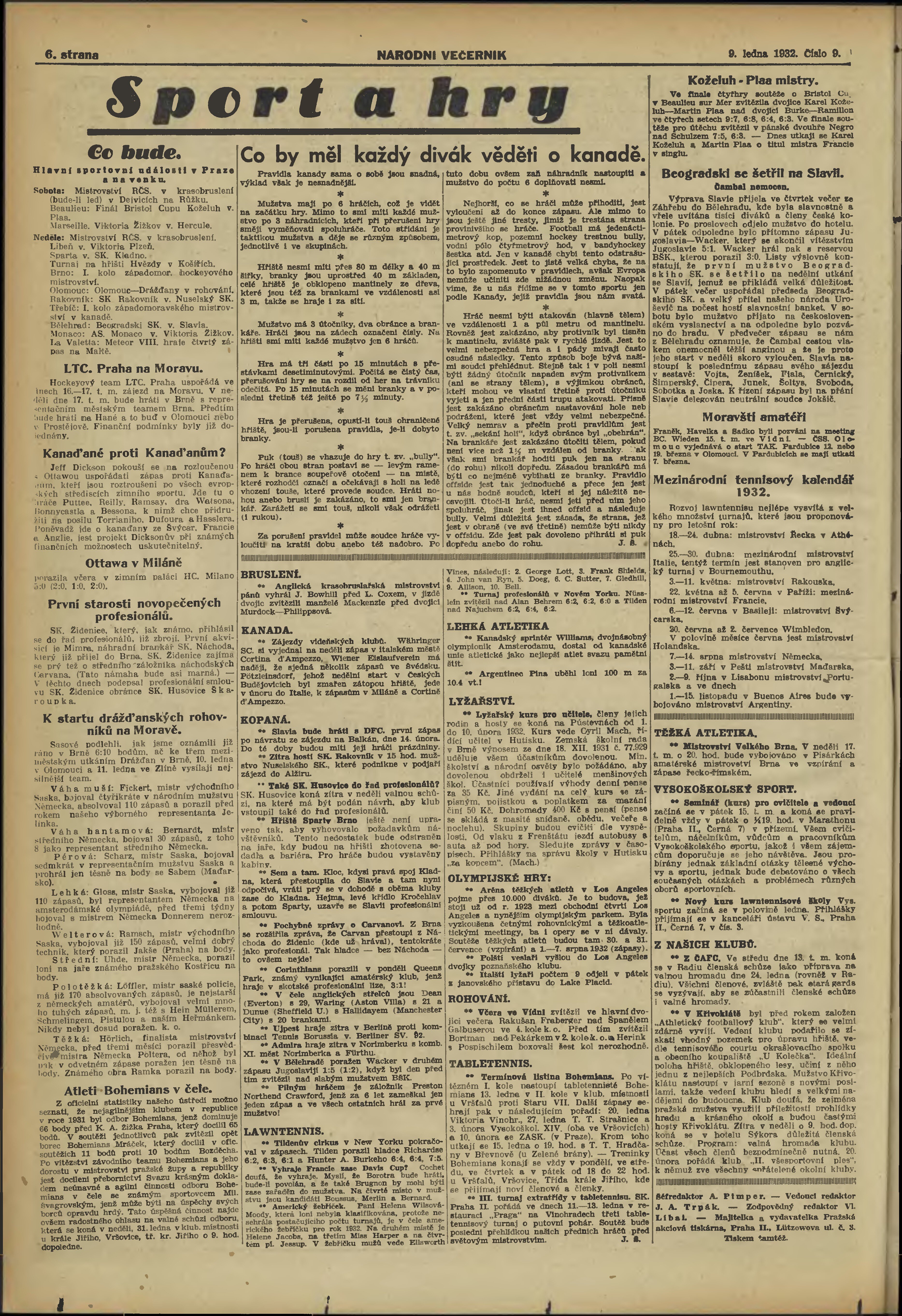 * Datum vydání výtisku: 9.1.1932 Číslo výtisku: 9 Poznámky k výtisku: večerní vydání;