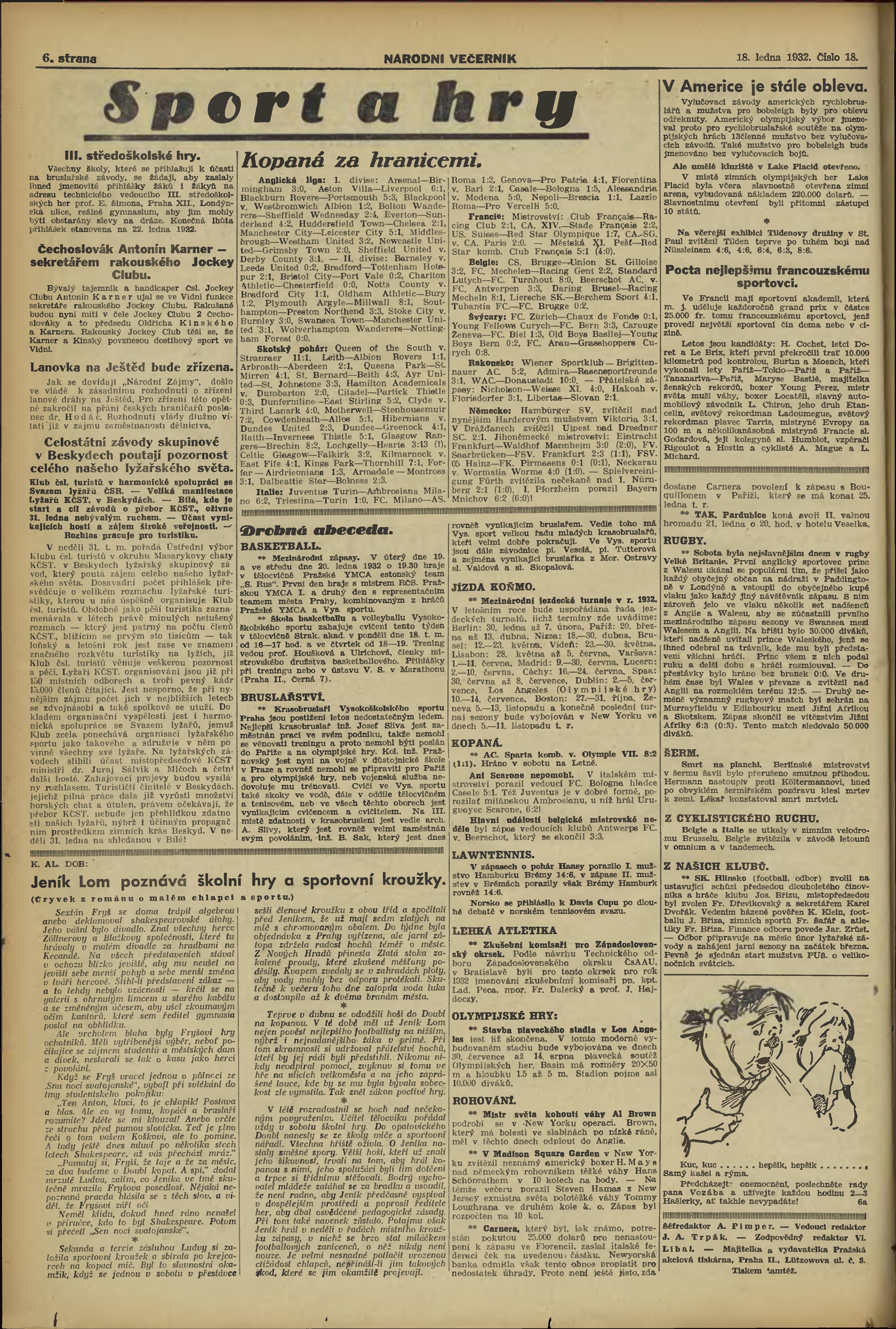 * Datum vydání výtisku: 18.1.1932 Číslo výtisku: 18 Poznámky k výtisku: večerní vydání;