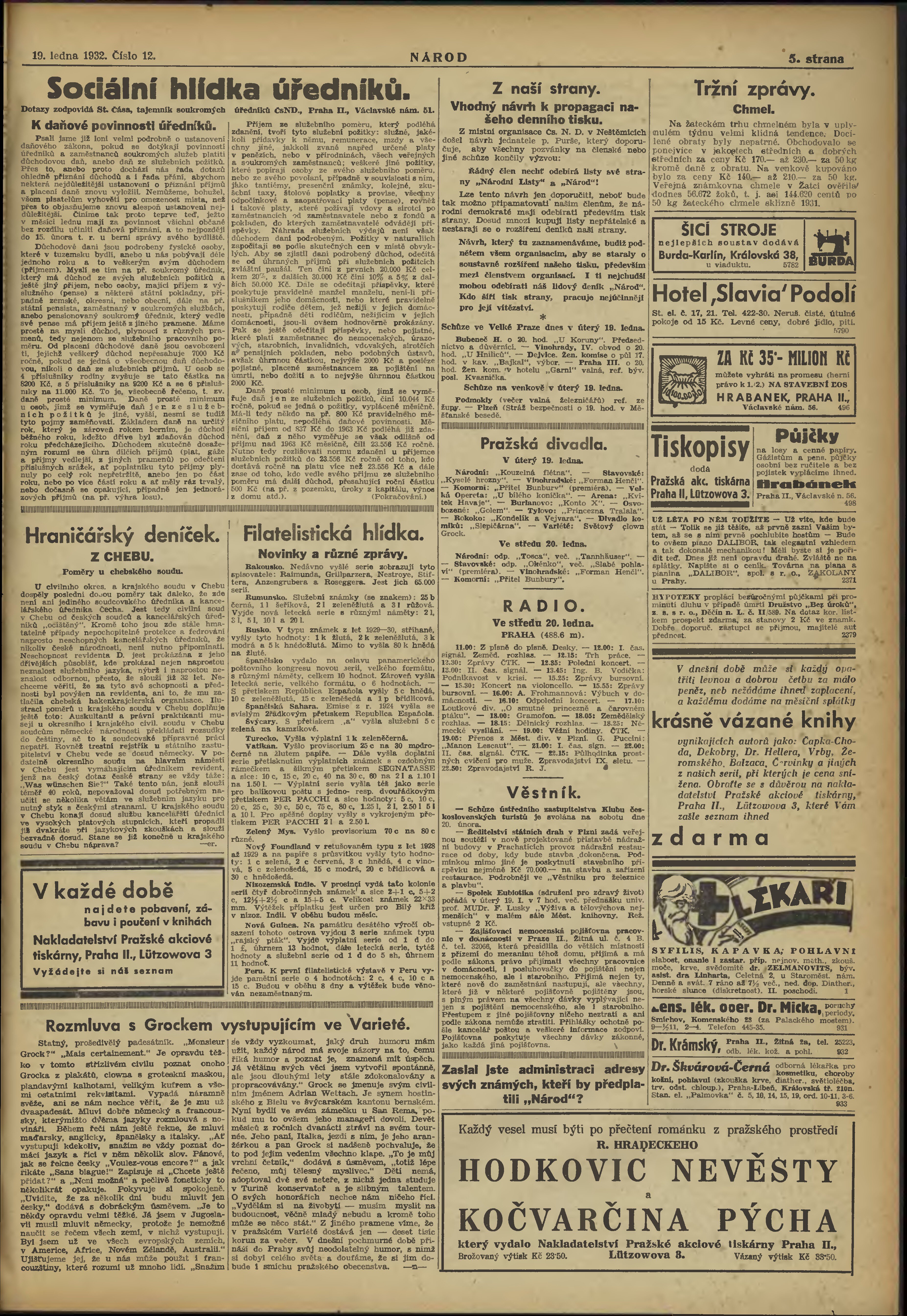 * Datum vydání výtisku: 19.1.1932 Číslo výtisku: 12