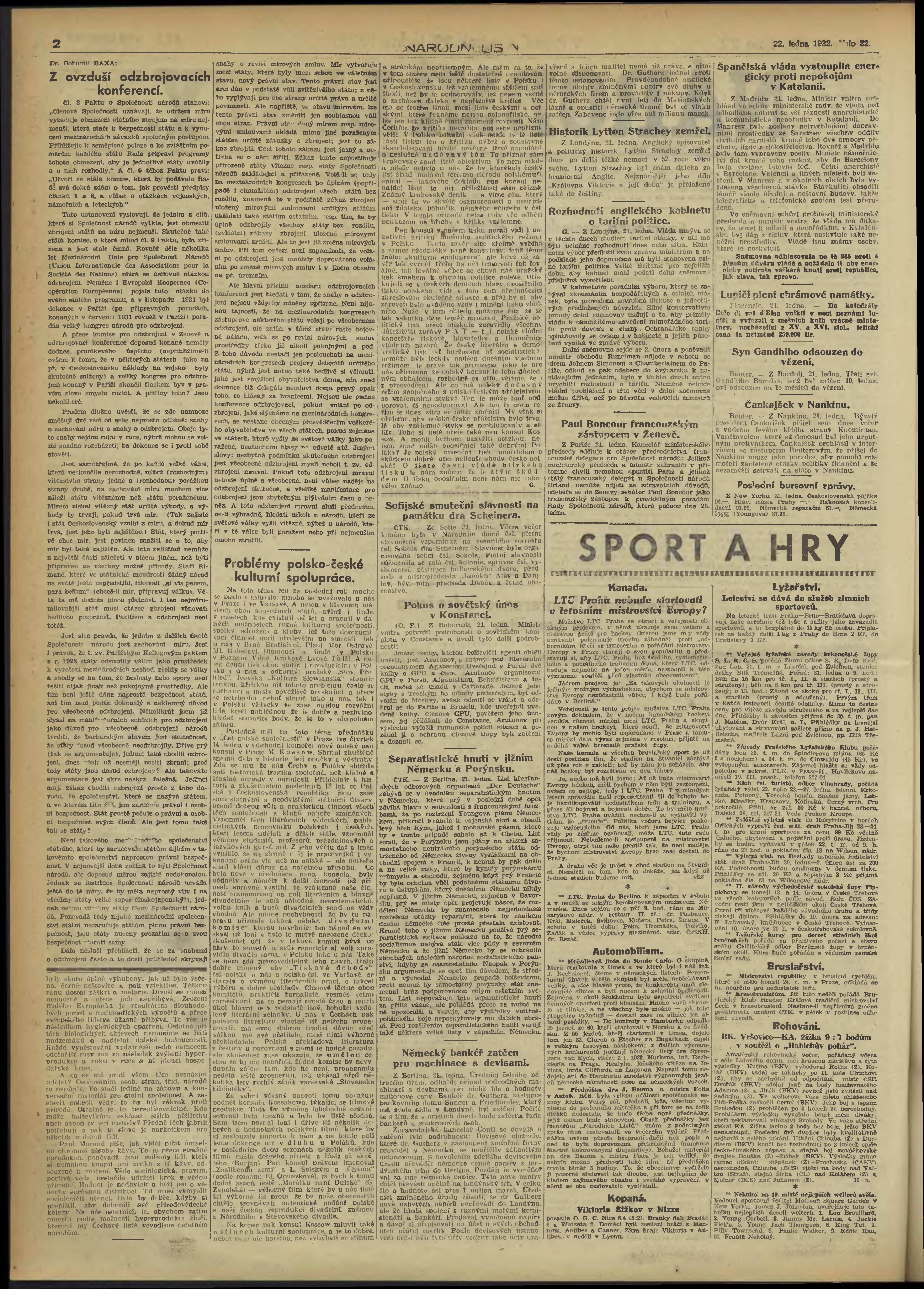 * Datum vydání výtisku: 22.1.1932 Číslo výtisku: 22 Poznámky k výtisku: obsahuje přílohu Knihy a čtenáři;