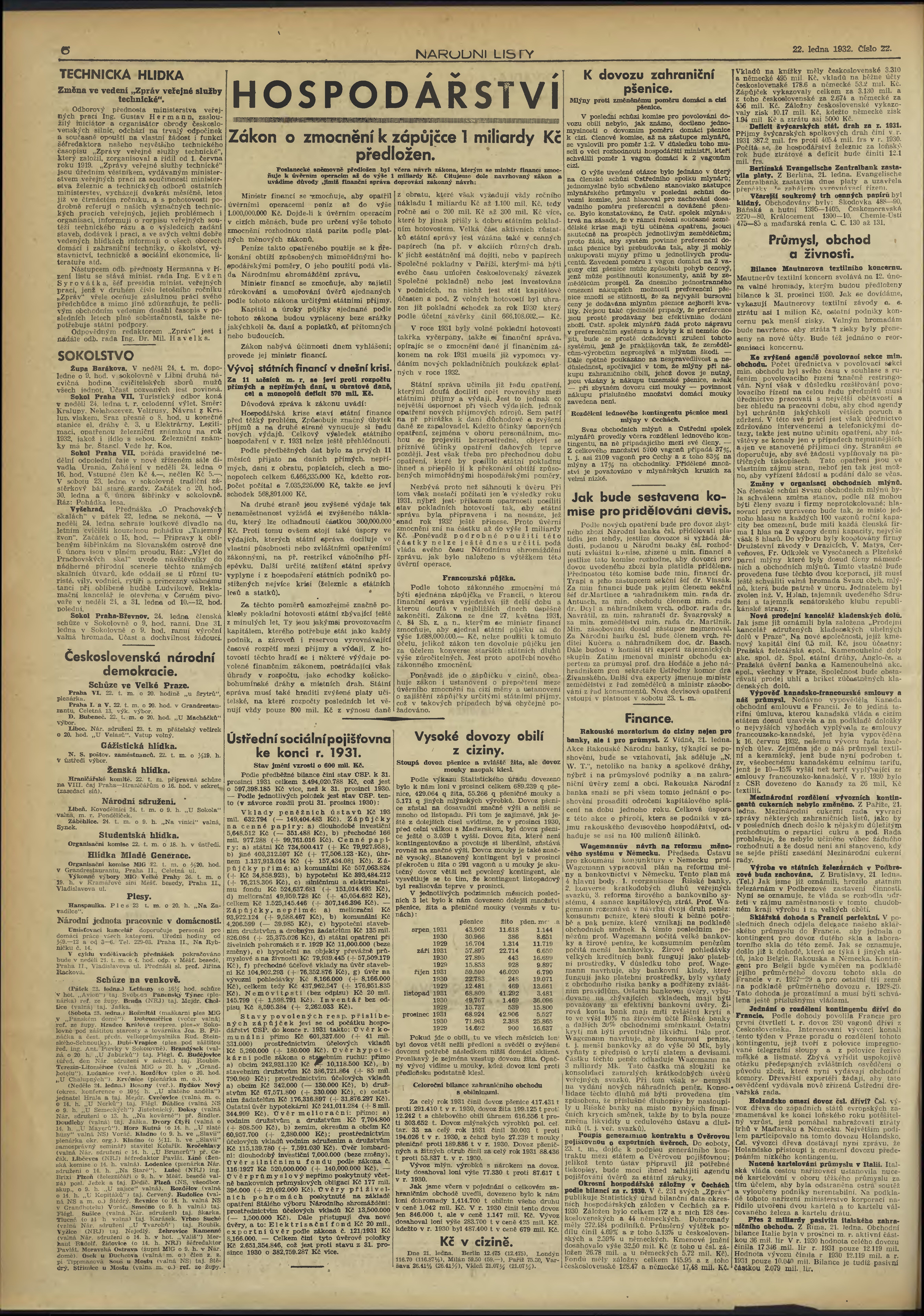 * Datum vydání výtisku: 22.1.1932 Číslo výtisku: 22 Poznámky k výtisku: obsahuje přílohu Knihy a čtenáři;