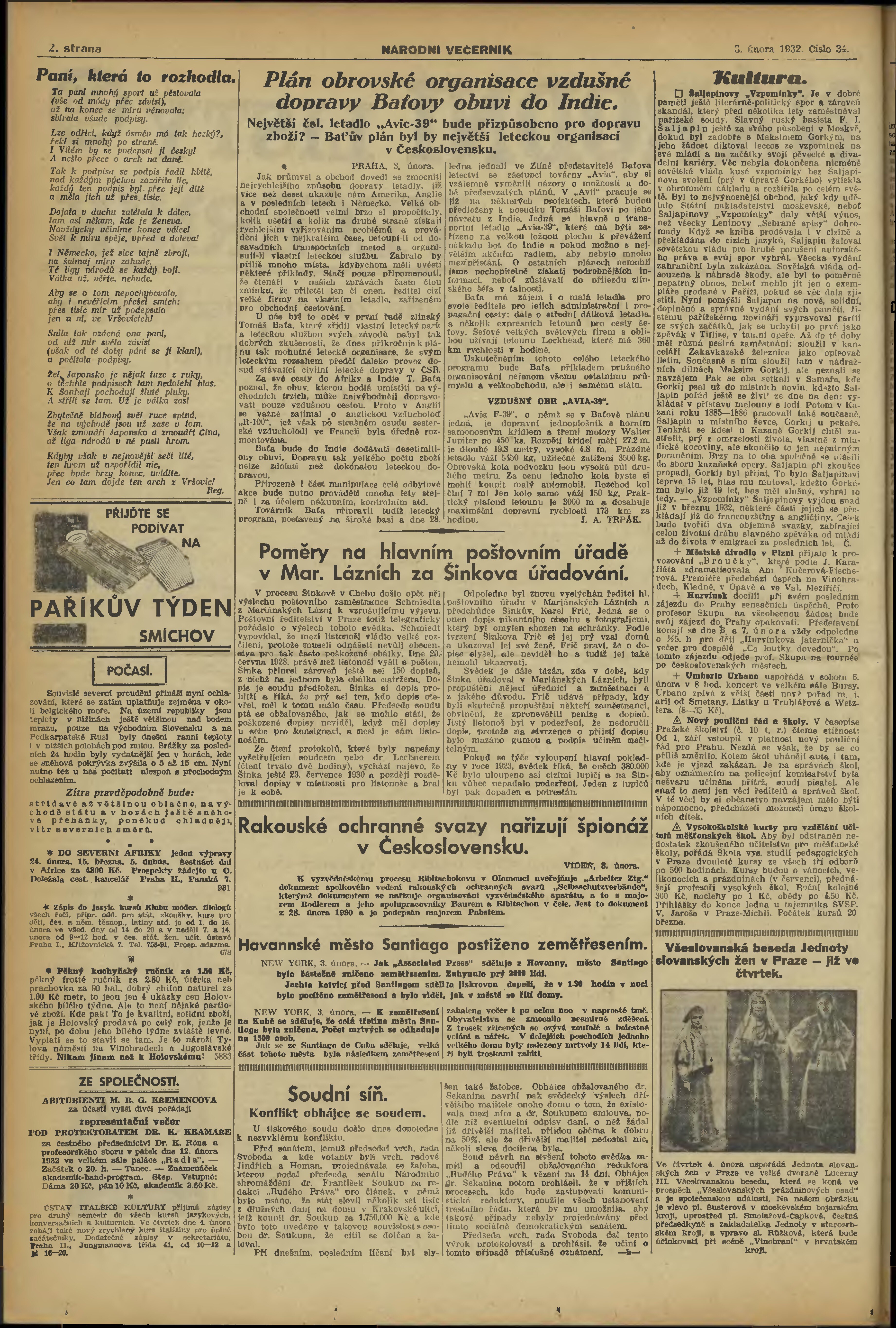 * Datum vydání výtisku: 3.2.1932 Číslo výtisku: 34 Poznámky k výtisku: večerní vydání;