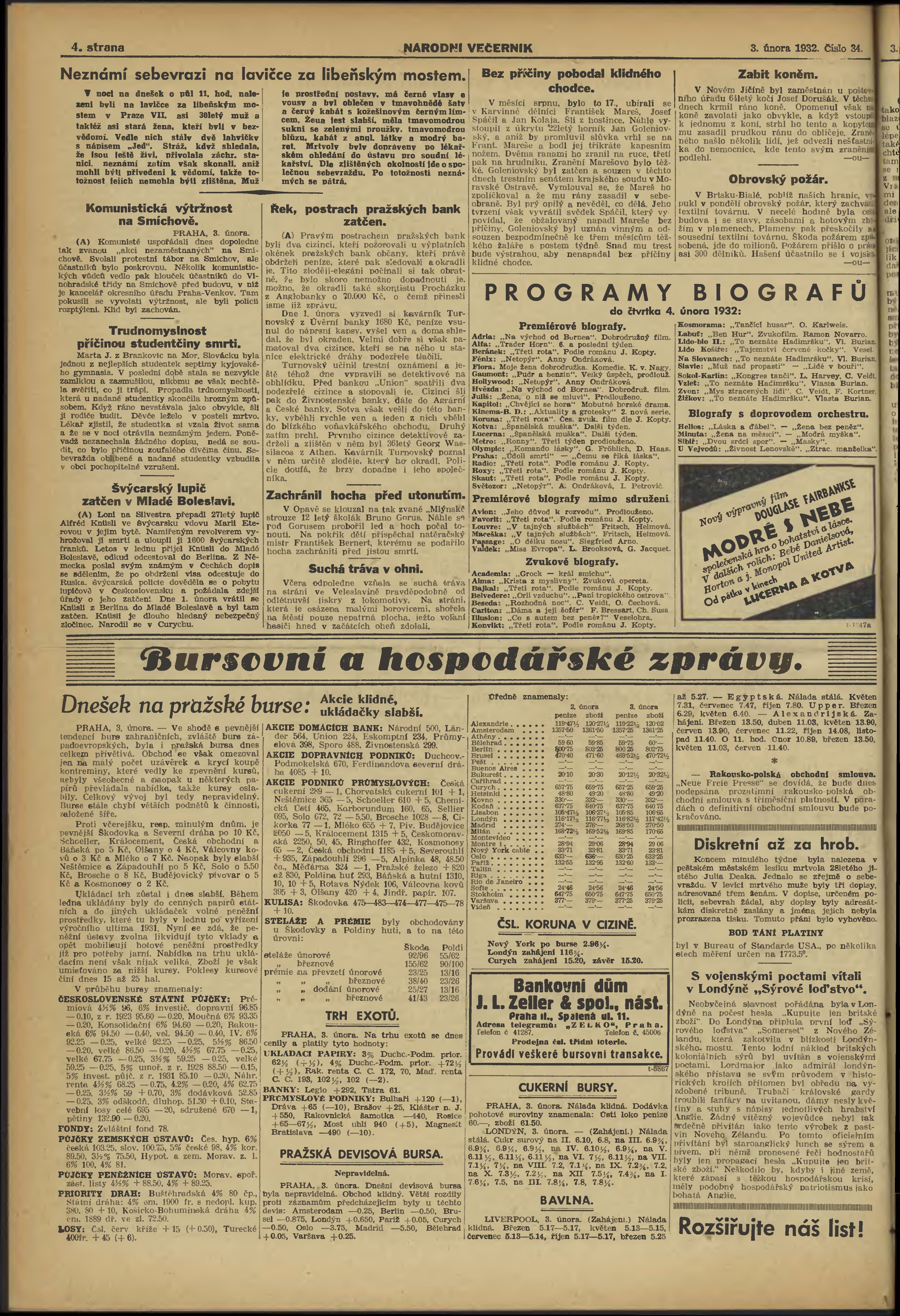 * Datum vydání výtisku: 3.2.1932 Číslo výtisku: 34 Poznámky k výtisku: večerní vydání;