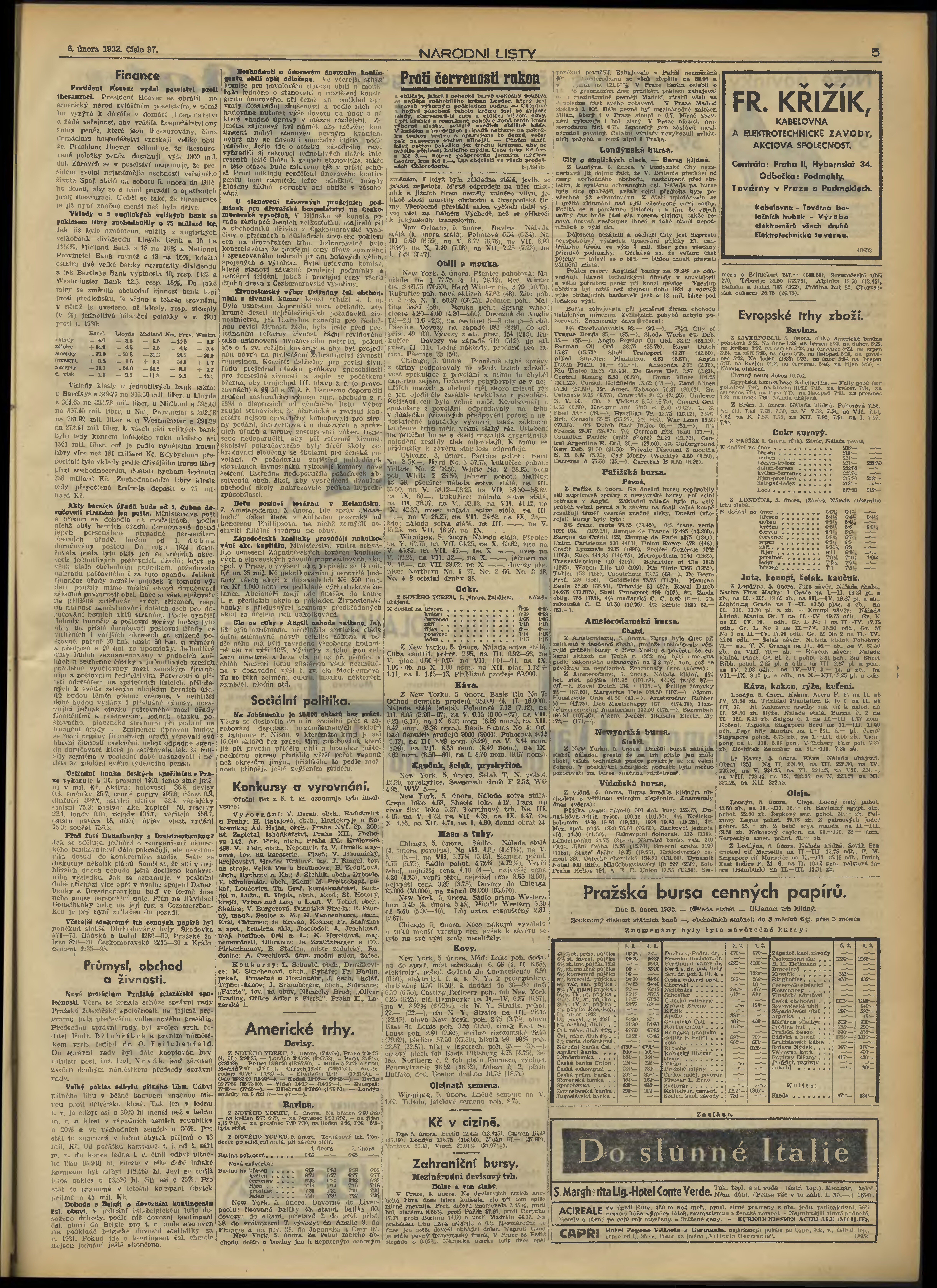 * Datum vydání výtisku: 6.2.1932 Číslo výtisku: 37