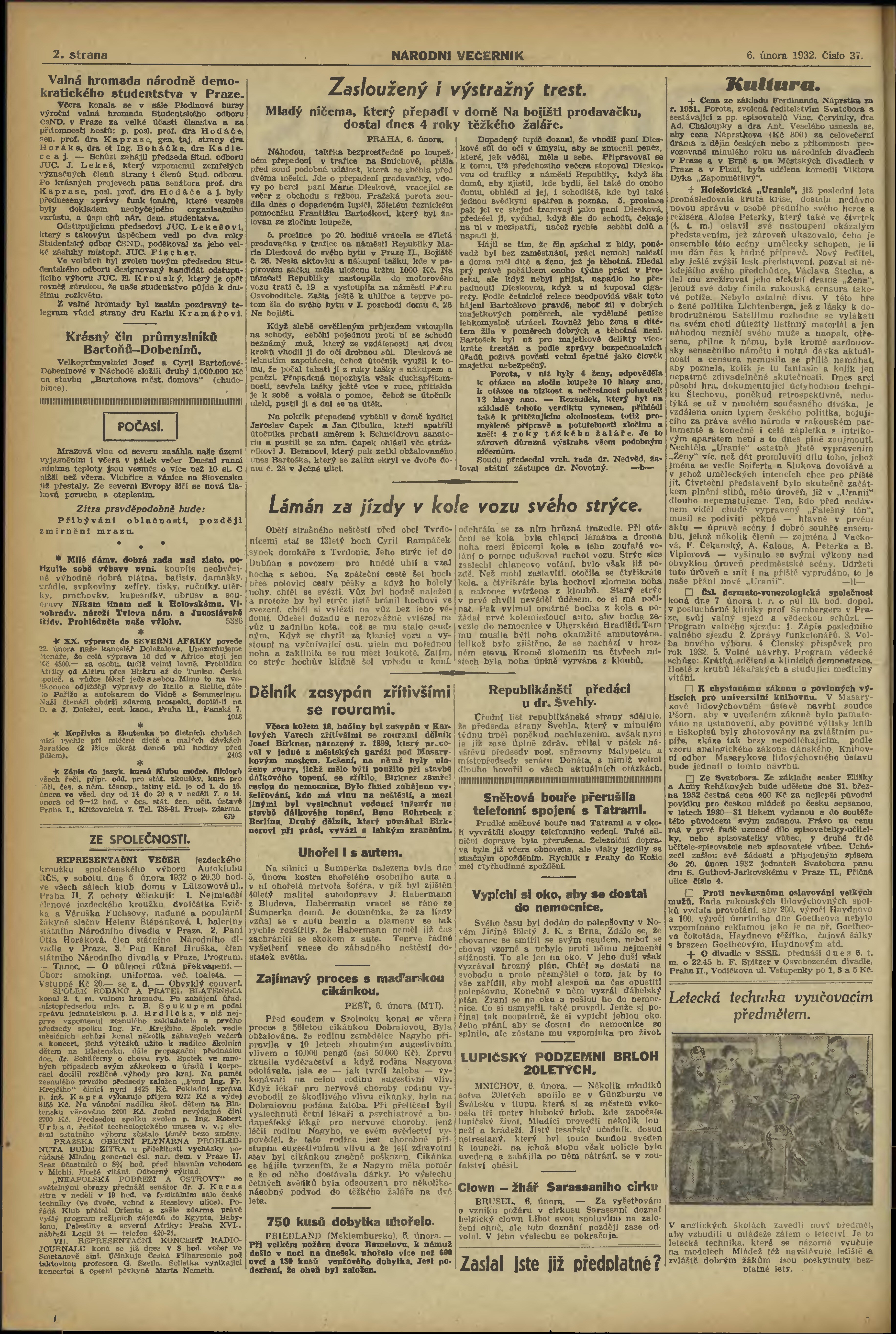 * Datum vydání výtisku: 6.2.1932 Číslo výtisku: 37 Poznámky k výtisku: večerní vydání;