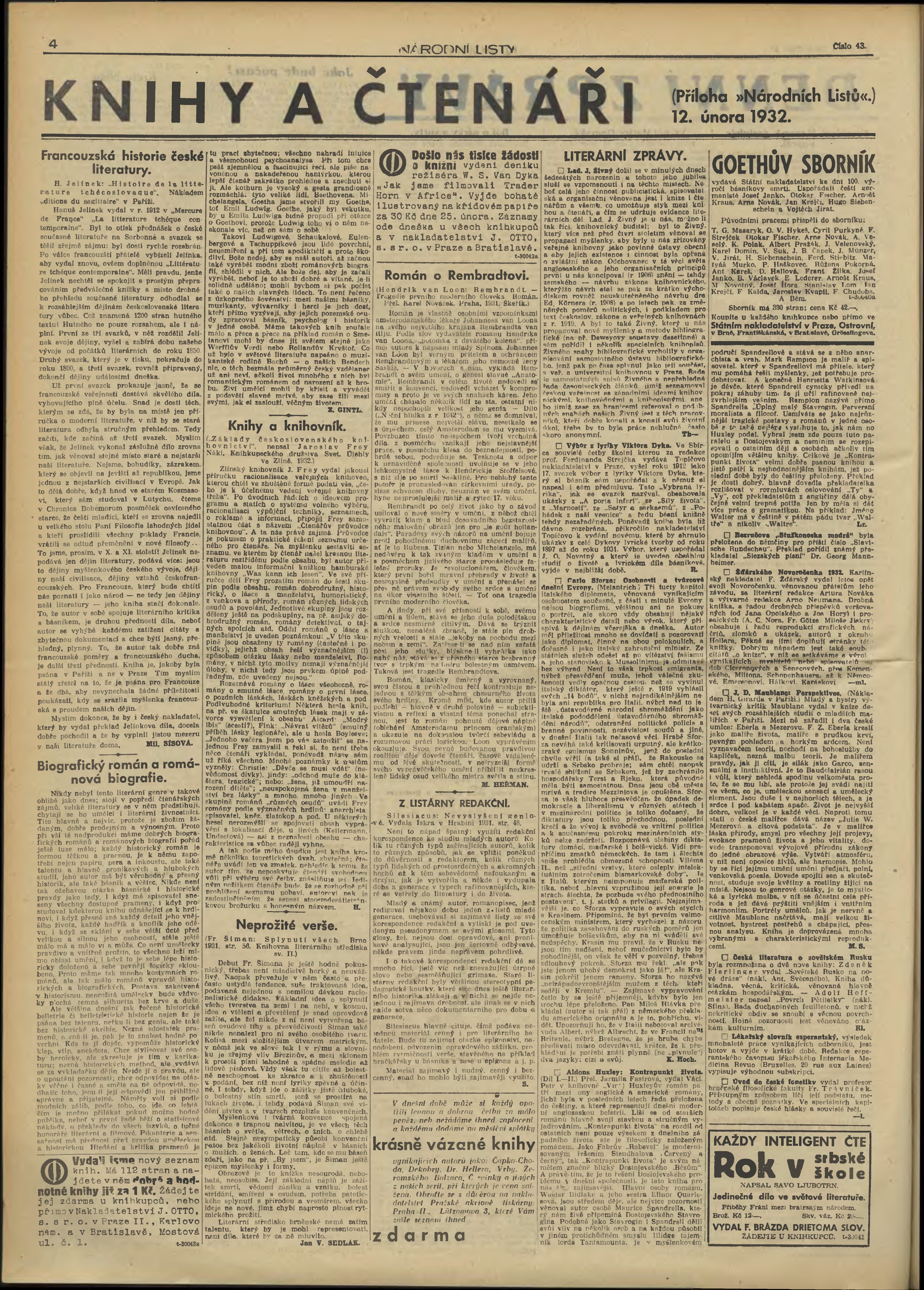 * Datum vydání výtisku: 12.2.1932 Číslo výtisku: 43
