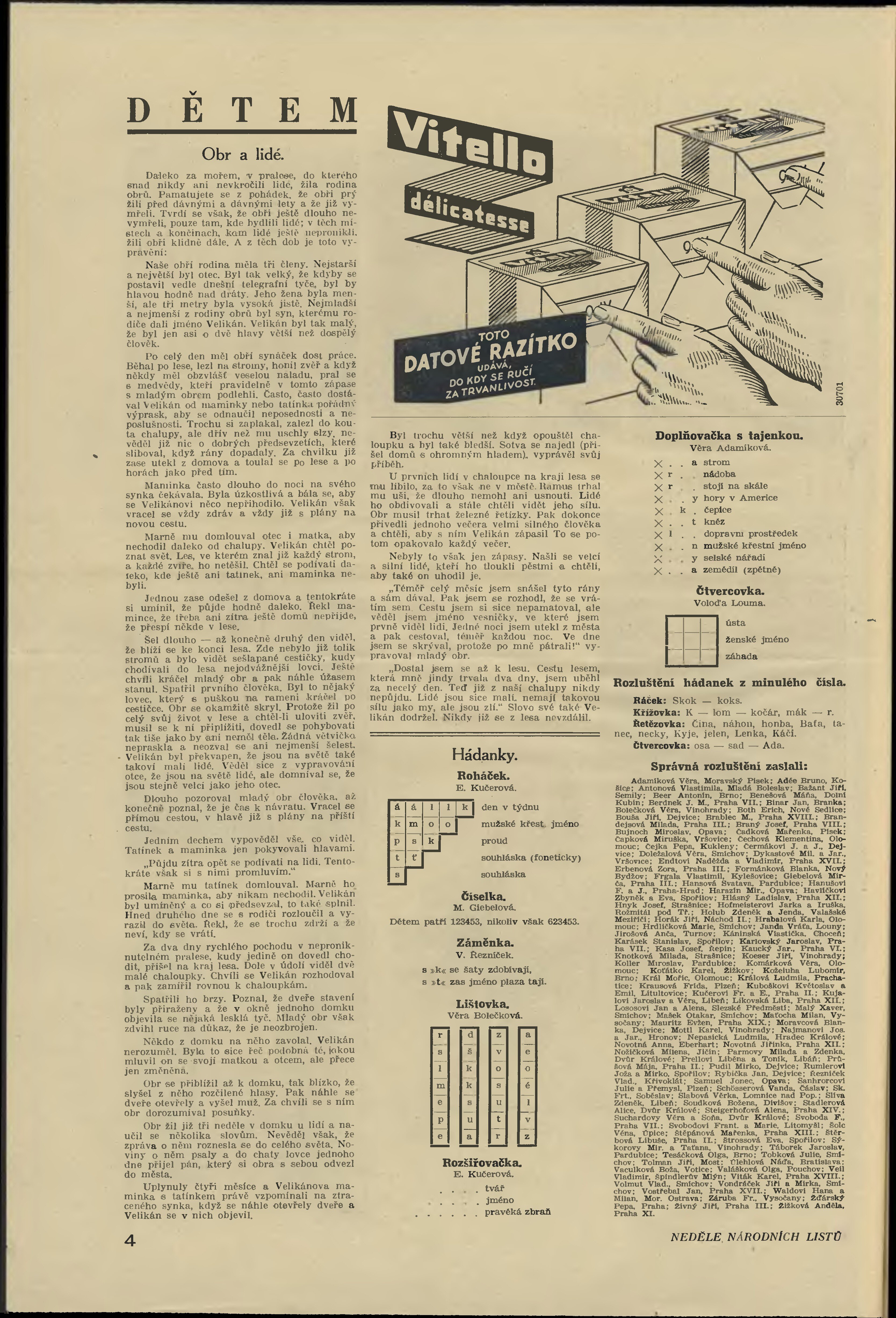 * Datum vydání výtisku: 13.3.1932 Číslo výtisku: 73 Typ výtisku: příloha