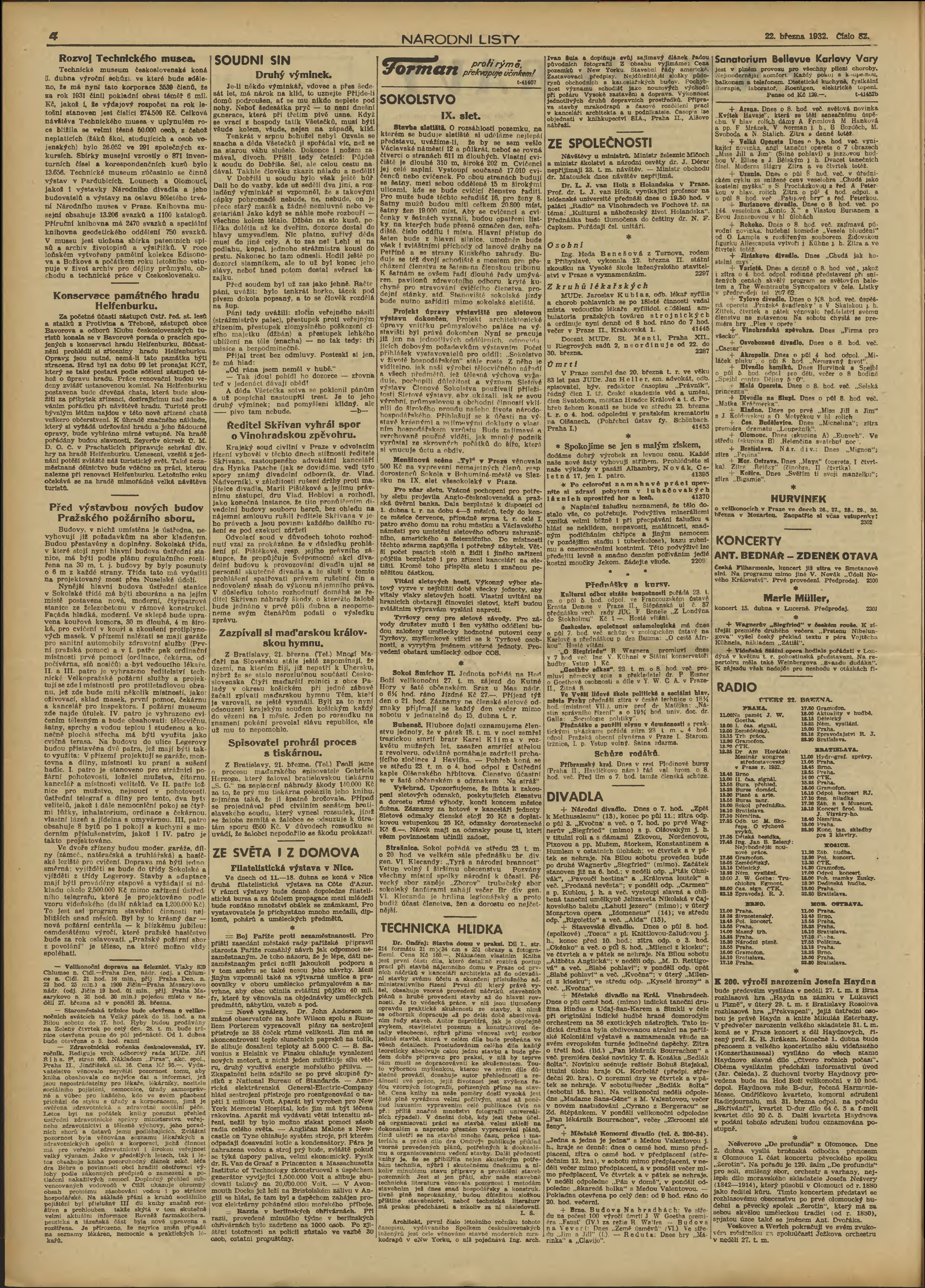 * Datum vydání výtisku: 22.3.1932 Číslo výtisku: 82