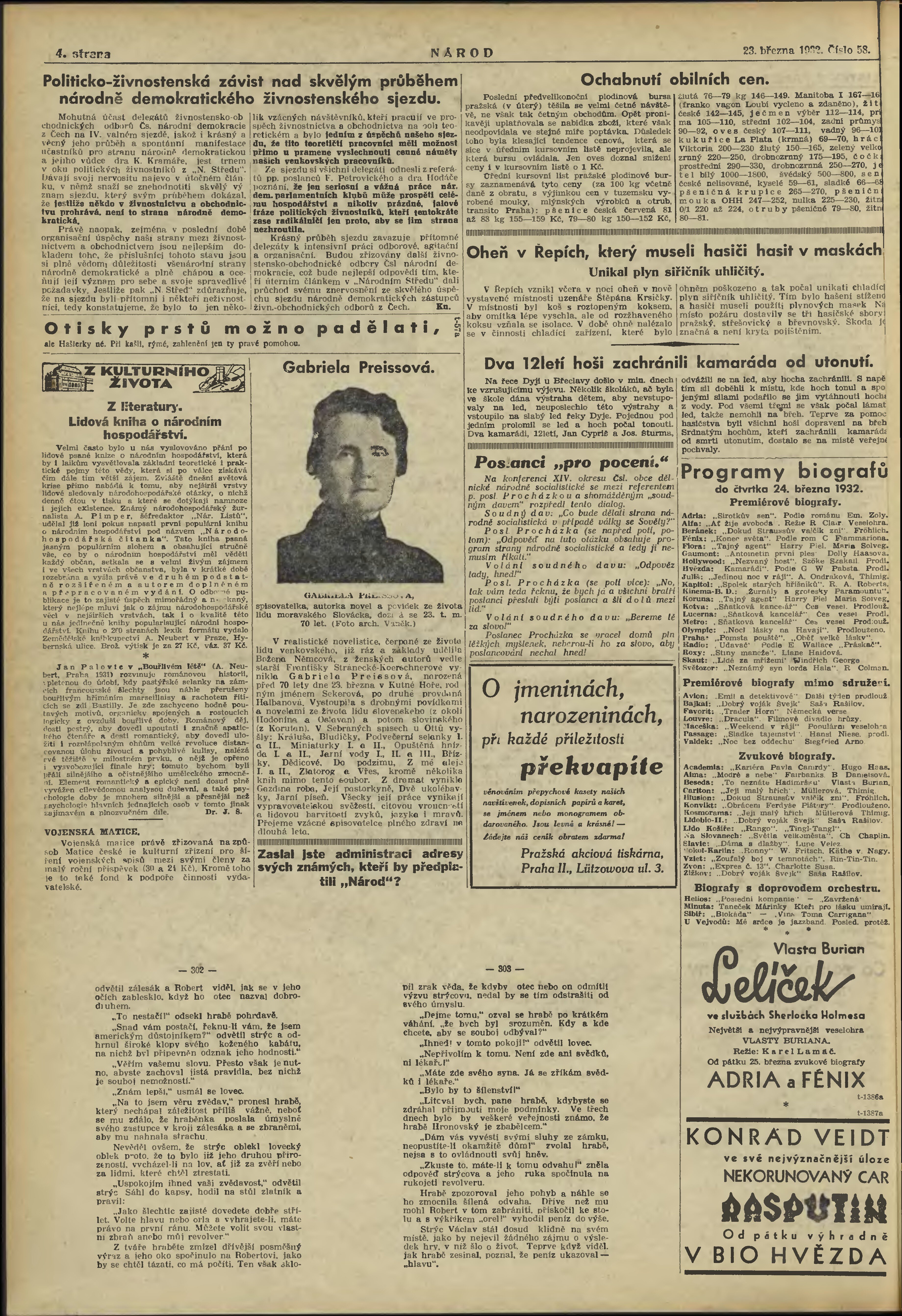* Datum vydání výtisku: 23.3.1932 Číslo výtisku: 58
