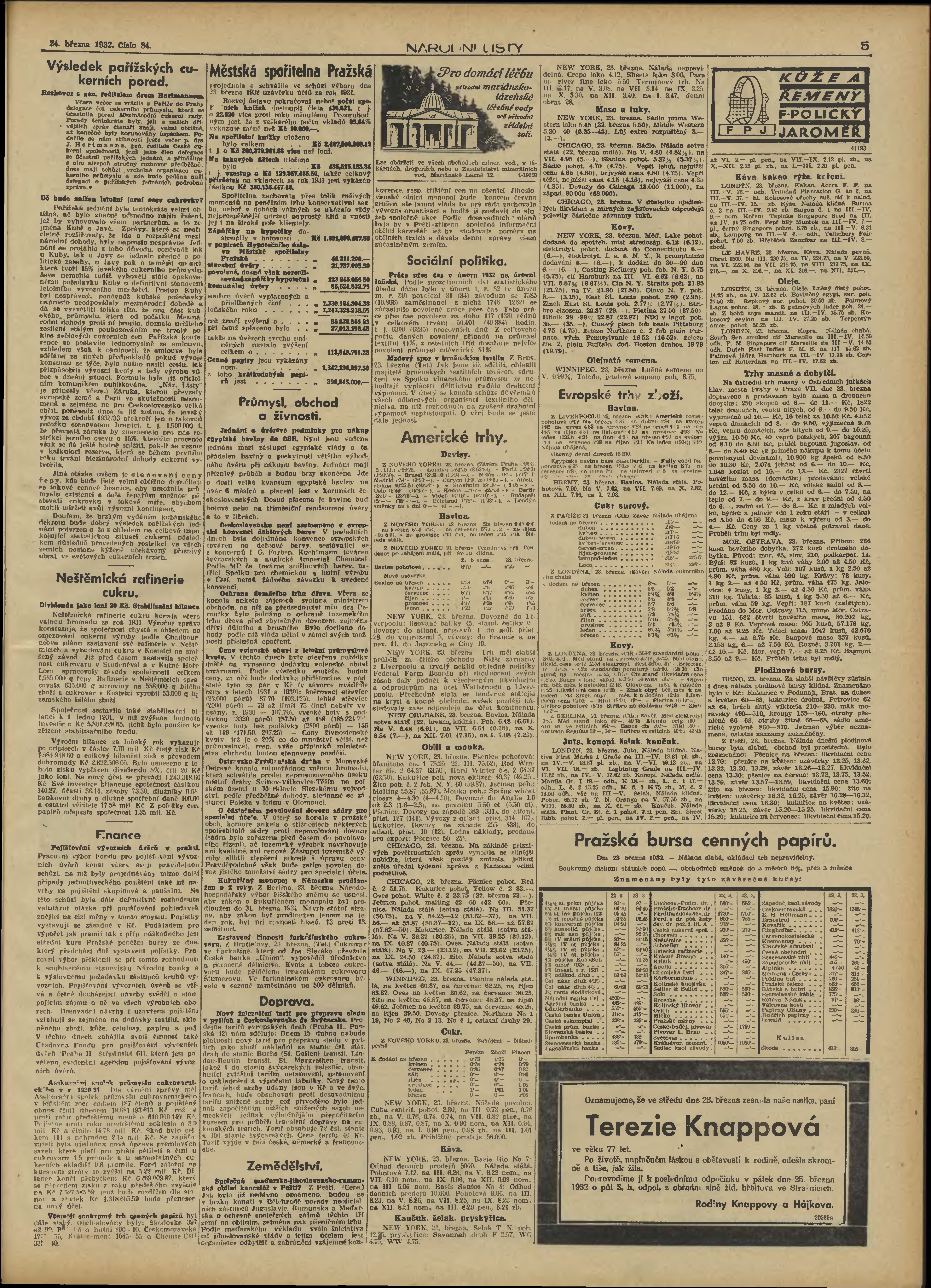 * Datum vydání výtisku: 24.3.1932 Číslo výtisku: 84