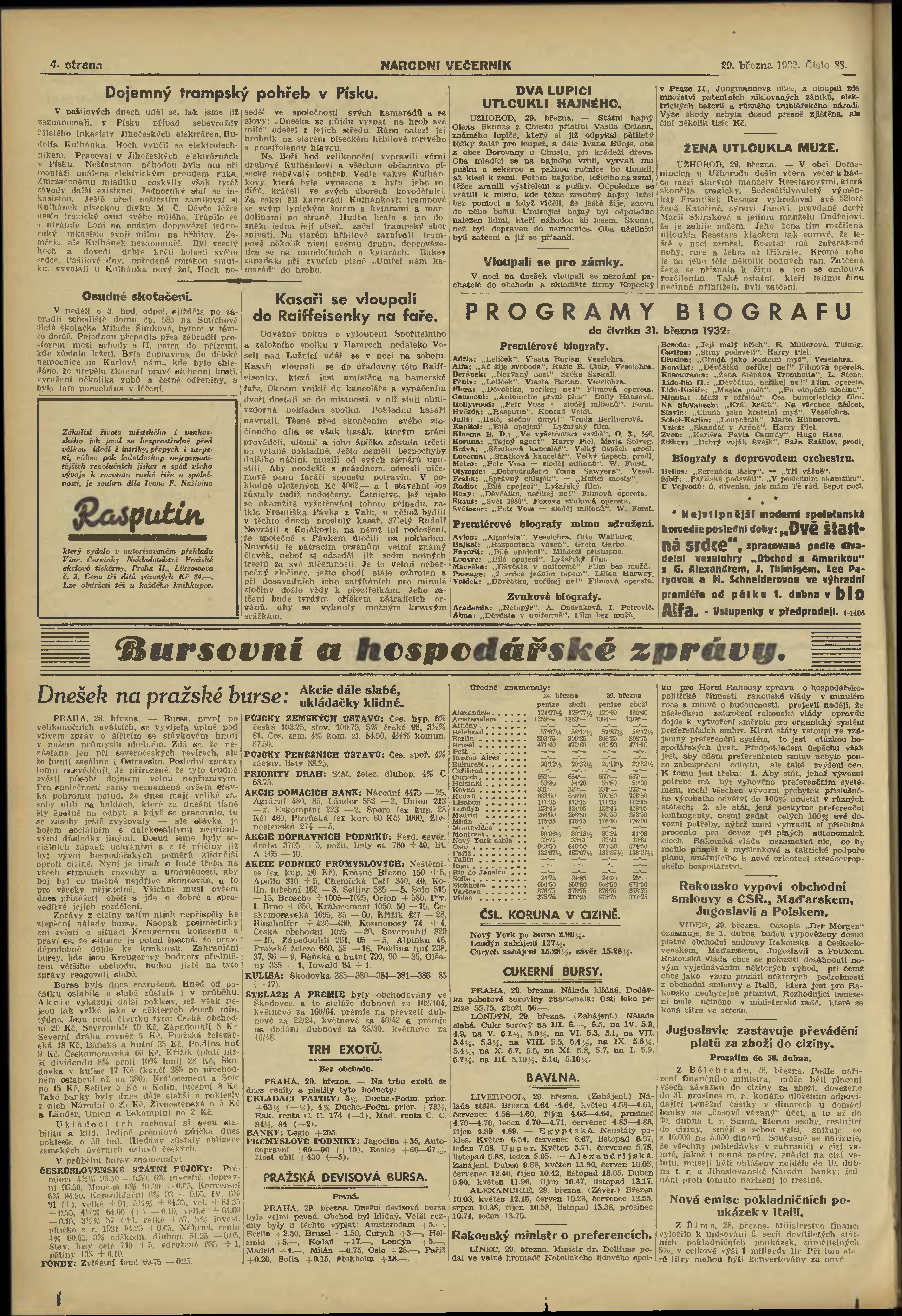 * Datum vydání výtisku: 29.3.1932 Číslo výtisku: 88 Poznámky k výtisku: večerní vydání;